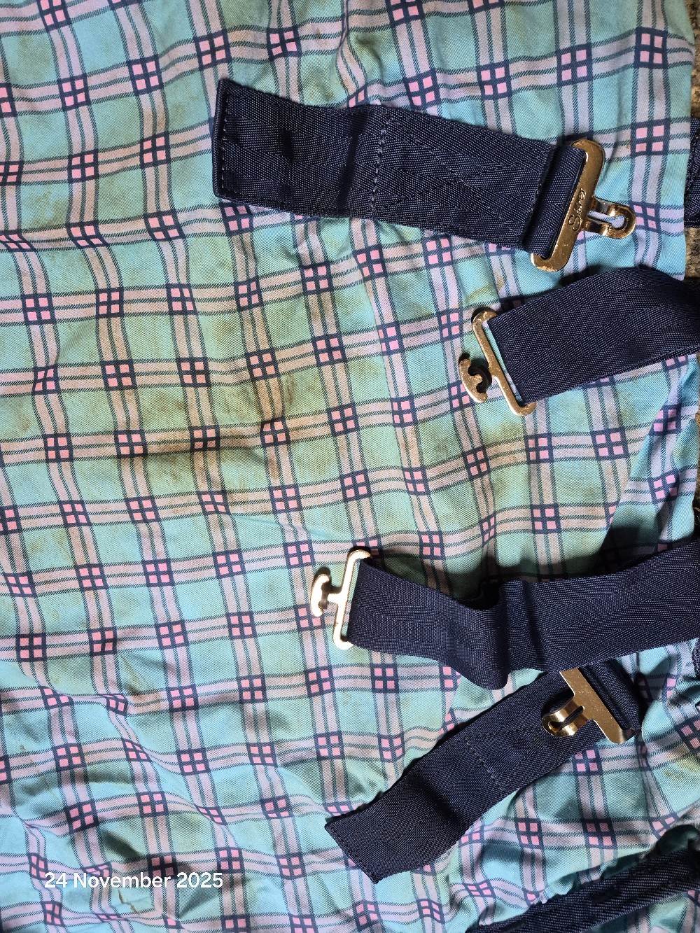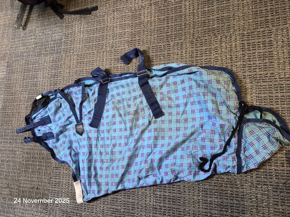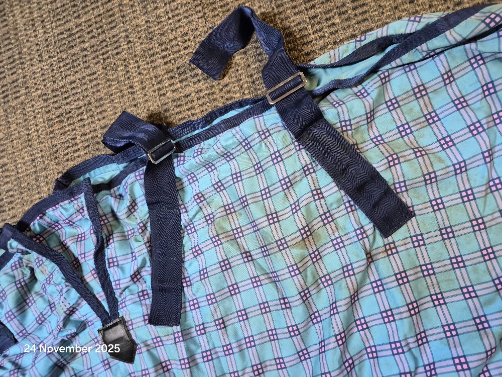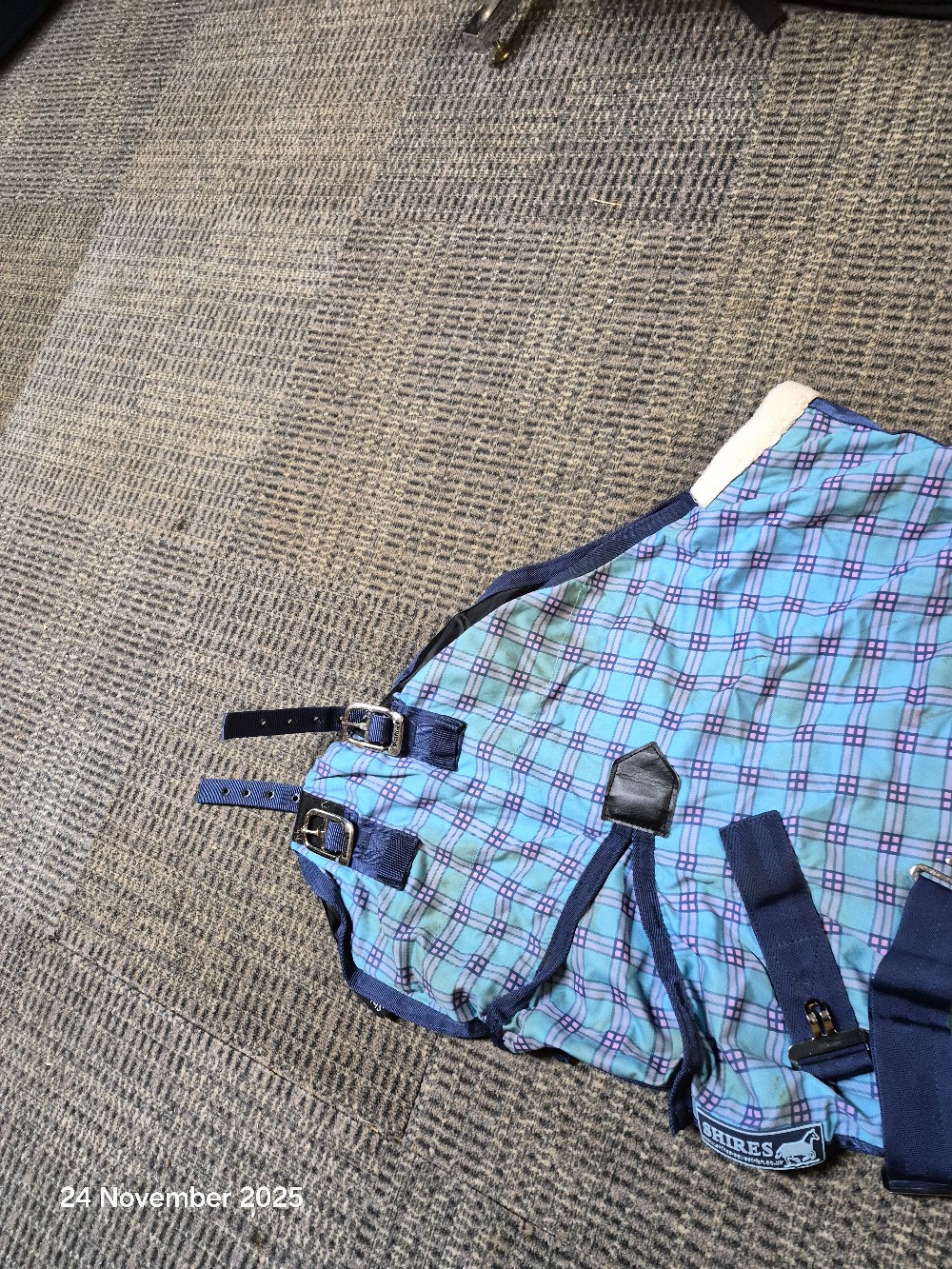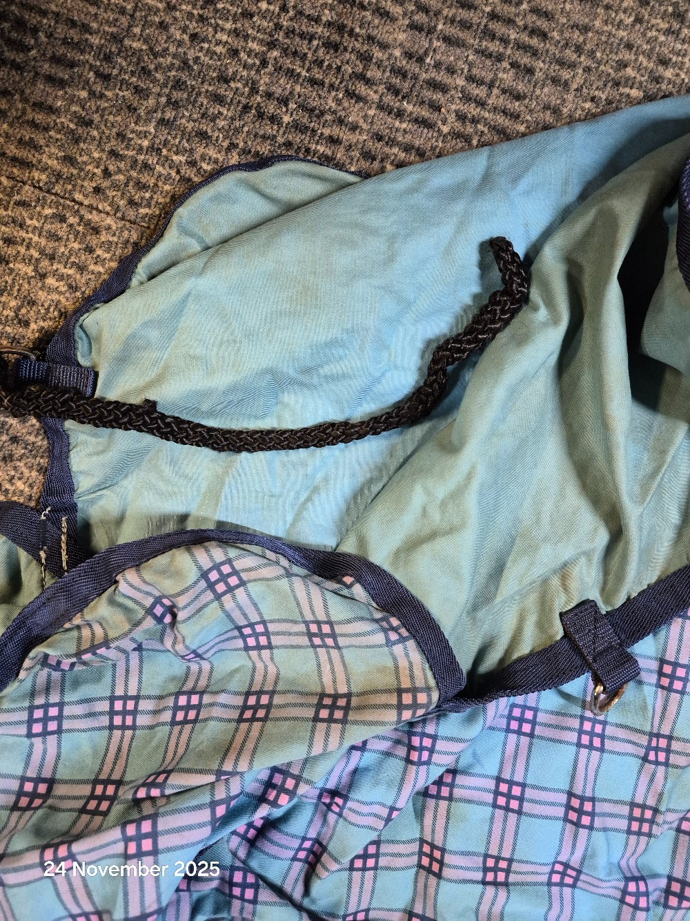 Shires Cotton Rug Size 4'3 Colour Blue/Pink USED Good working order has been washed but does have some stains