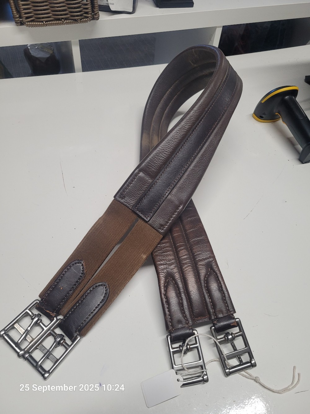 Leather Elasticated one end Girth Size 44" Colour Brown USED Good working order