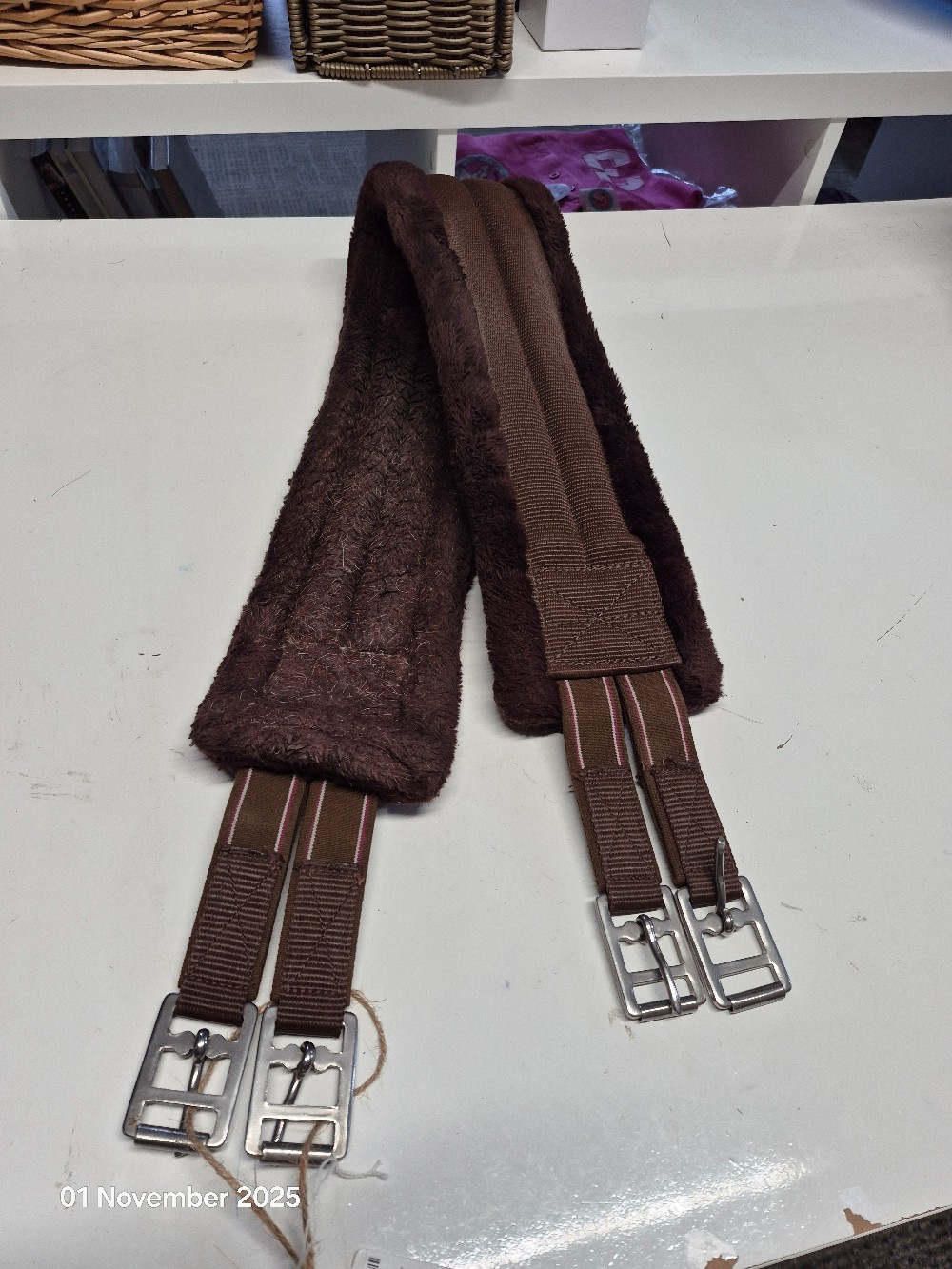 Fleece Girth Size 48" Colour Brown USED Good working order doe have some hairs on underside of the fleece