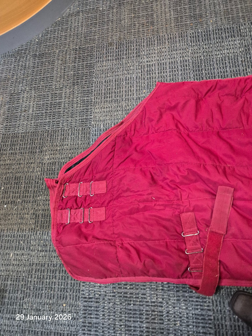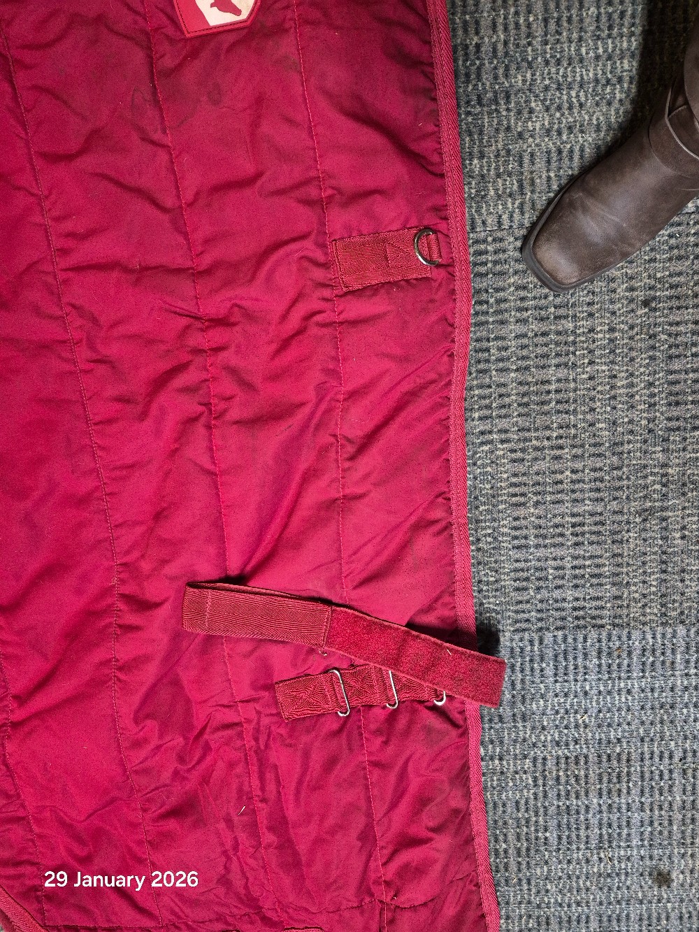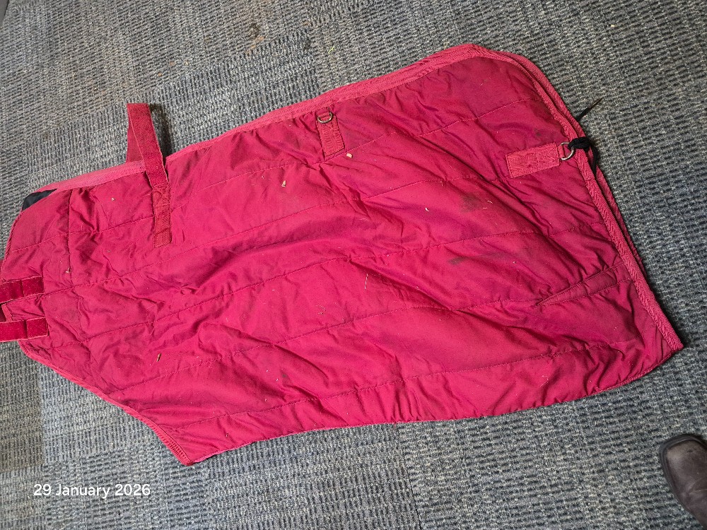 Stable Rug No Neck Size 5'3 Light Colour REd USED Good working order would benefit from a wee wash