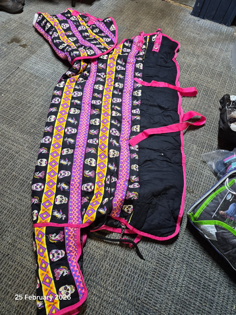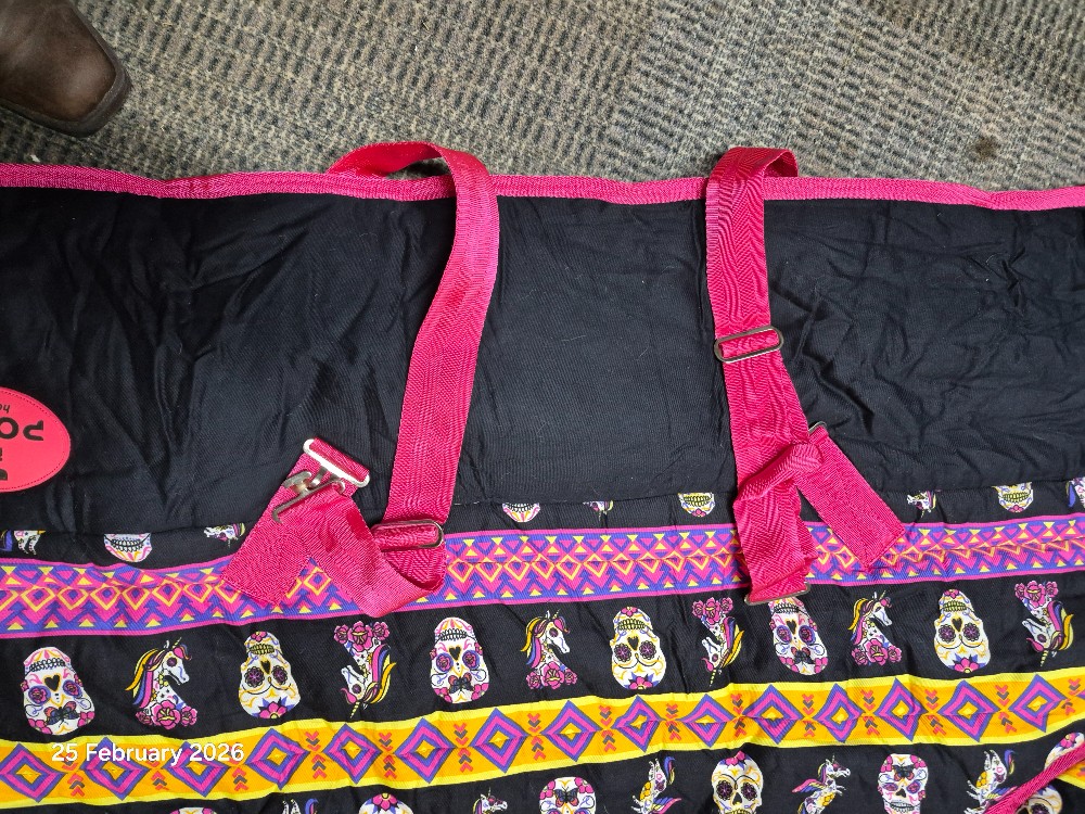 Ponyo Stavle Rug Detach Neck Size 5'9 100gm Colour Black/White/Pink Uniconr & SkullsLIKE NEW has been washed
