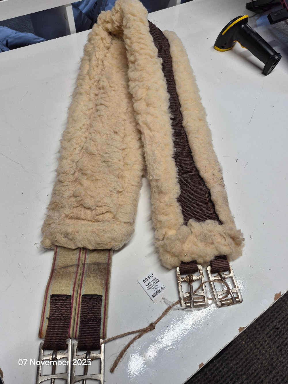 Fishers Sheepskin Girth Size 52" Colour Brown USED Good working order does have some rust on buckles but doesn't affect use