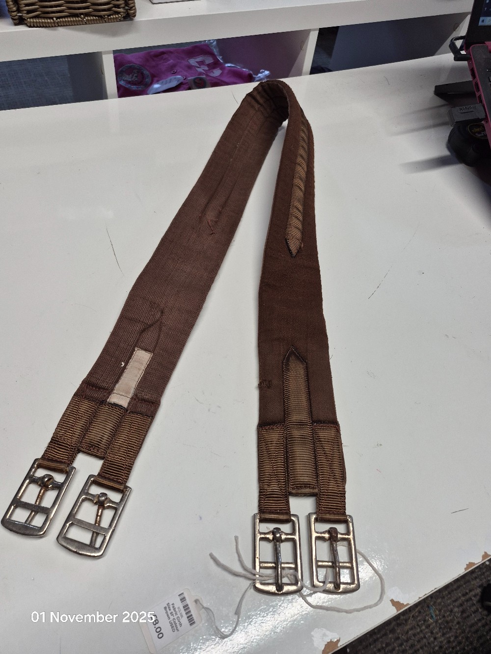 Fabric Girth Size 51" Colour Brown USED Good working order some rust spots on the buckles but doesn't affect use