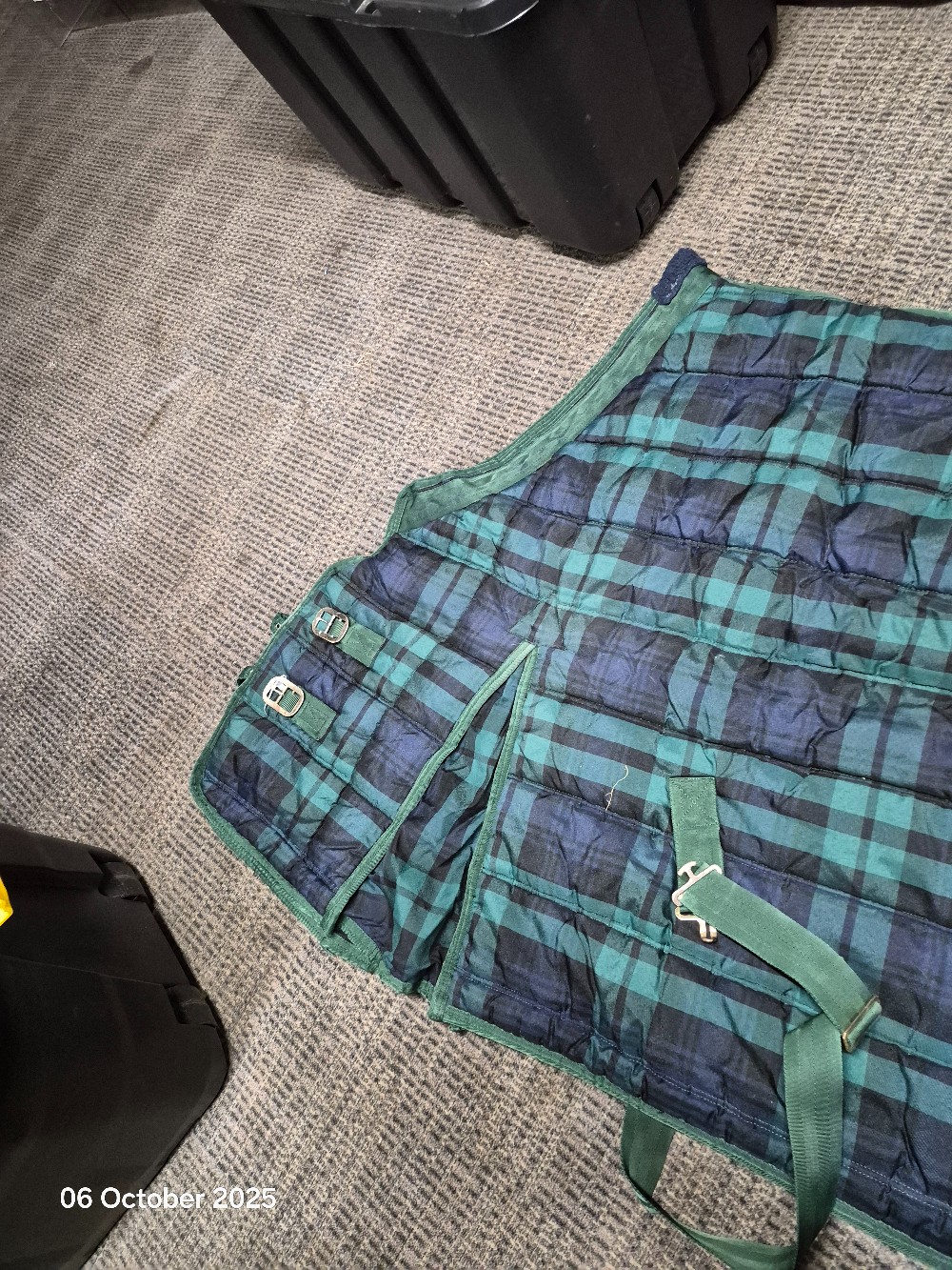 Masta Stable Rug No NEck Size 6'0 HEavy Green/Navy USED Good Condition has been washed