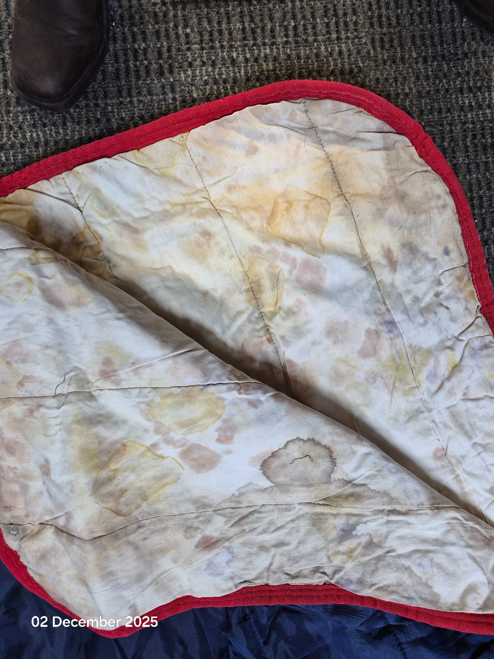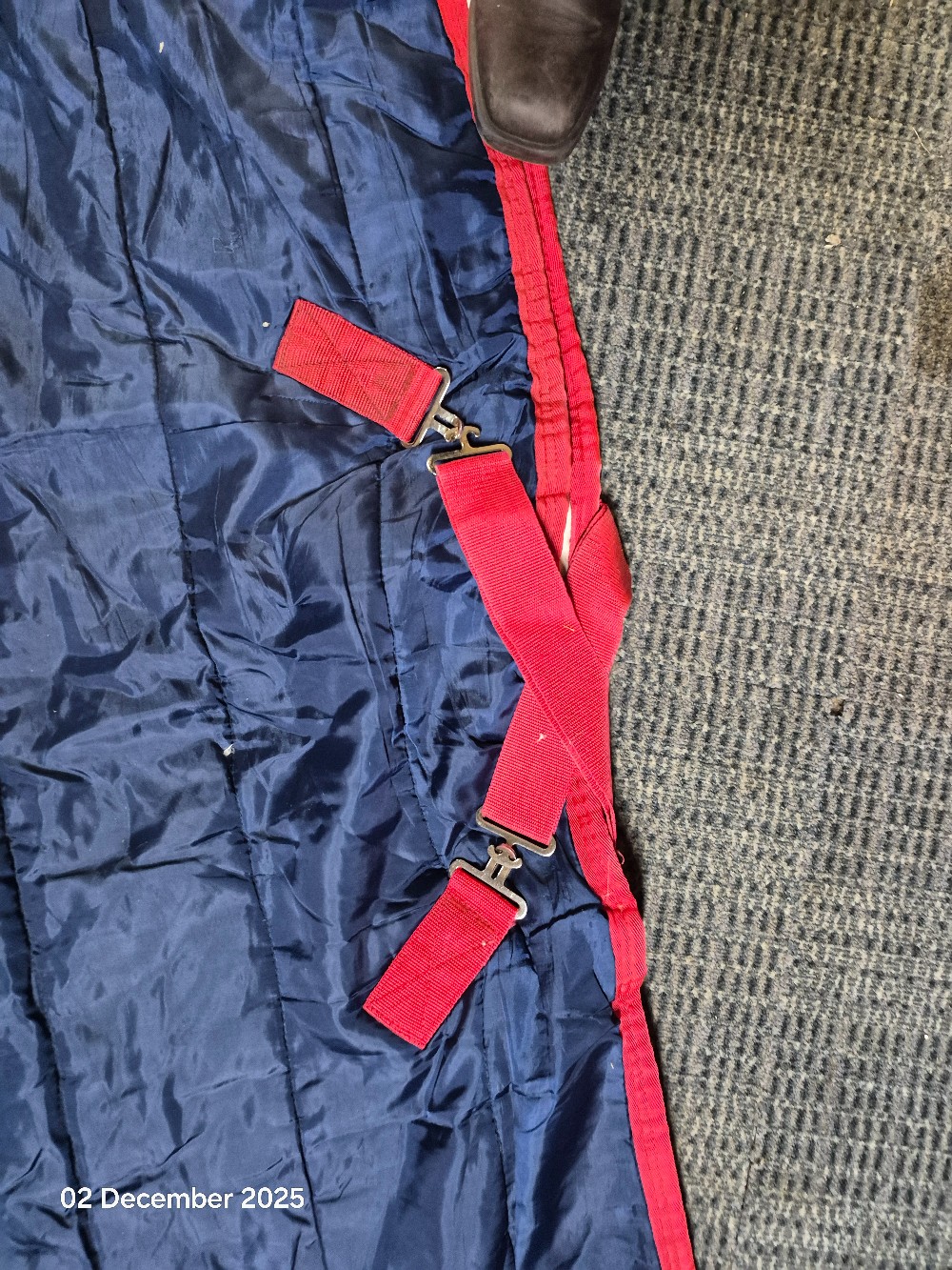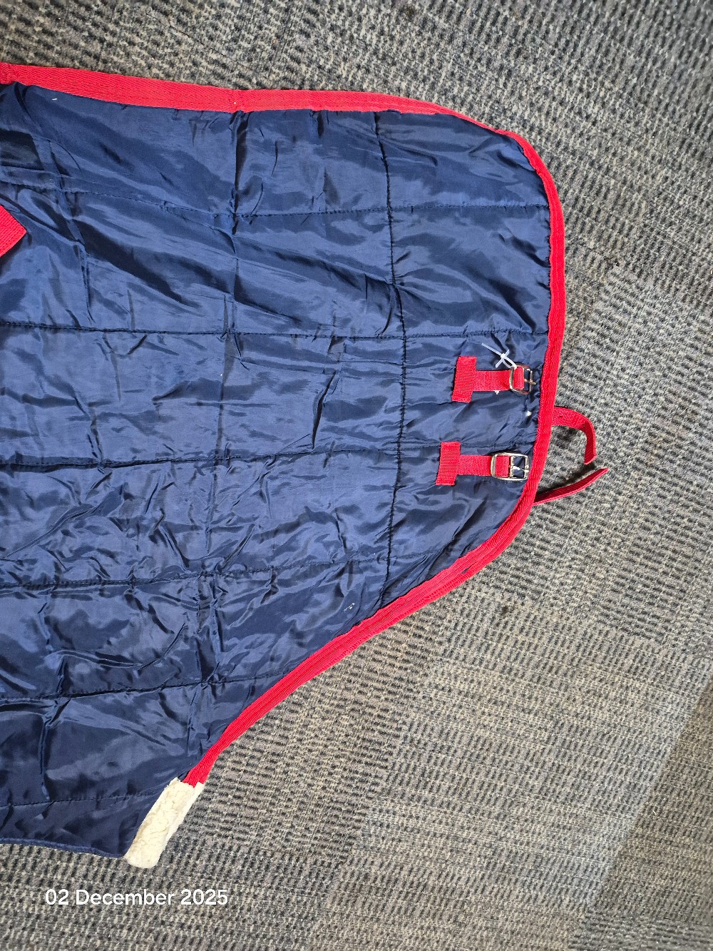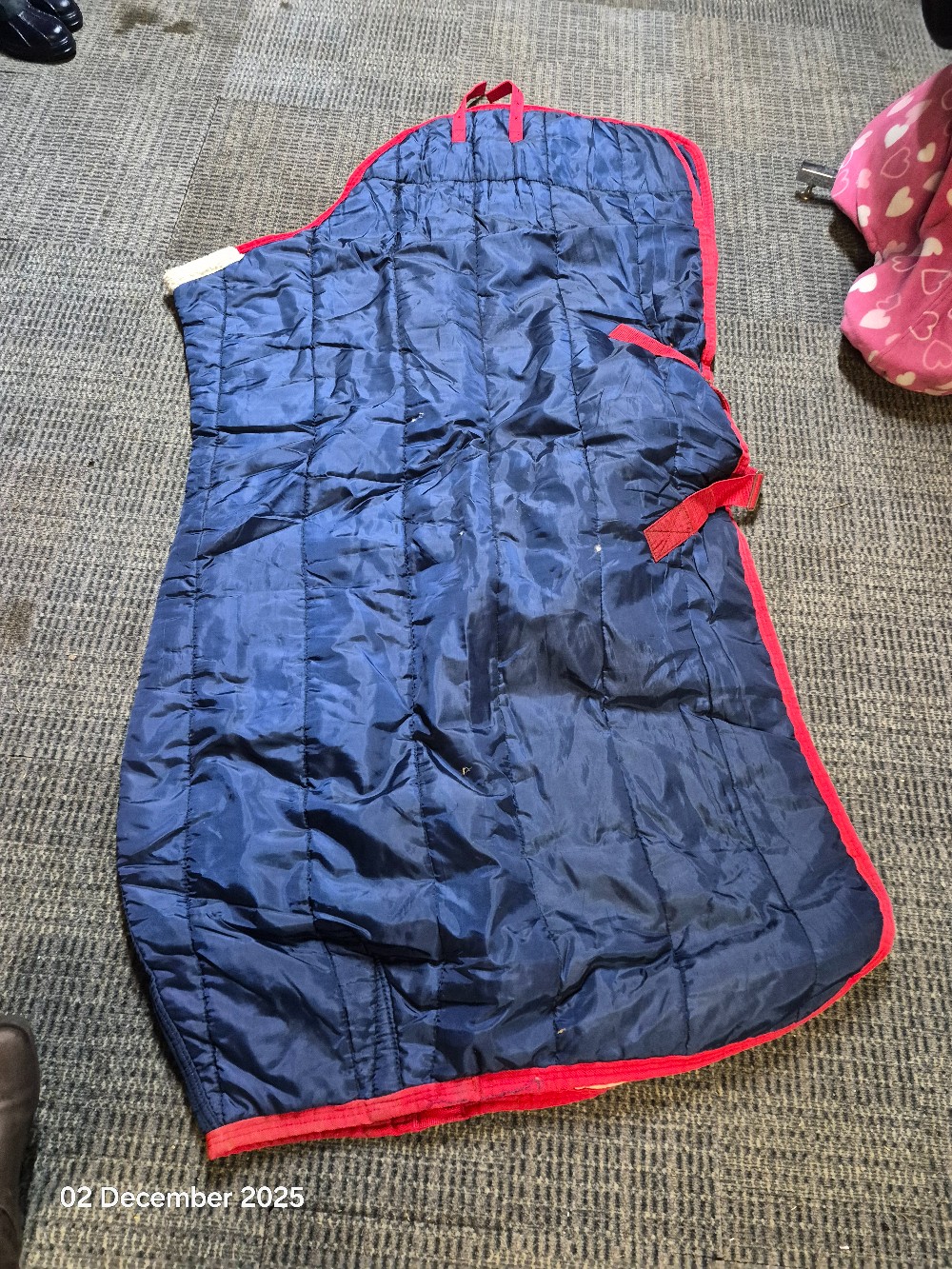 STable Rug No Neck Size 6'0 Light COlour Navy/Red USED Good working condition has been washed but does have stains on underside