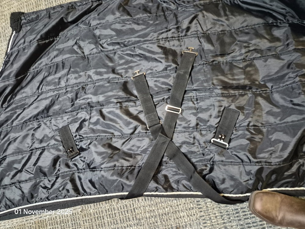 MASTA Stable Rug No Neck Size 6'6 Lght Colour Black USED Good condition has been washed some rust spots on metal work