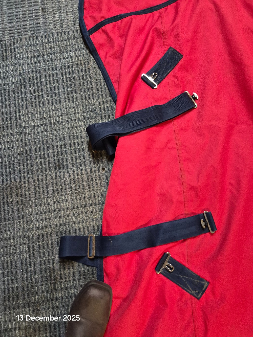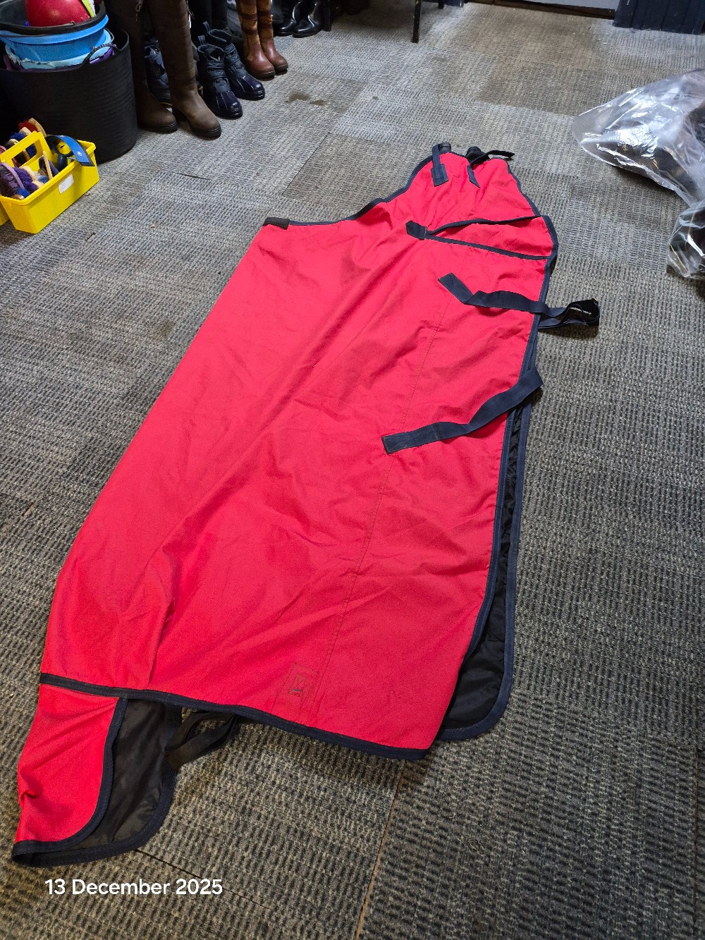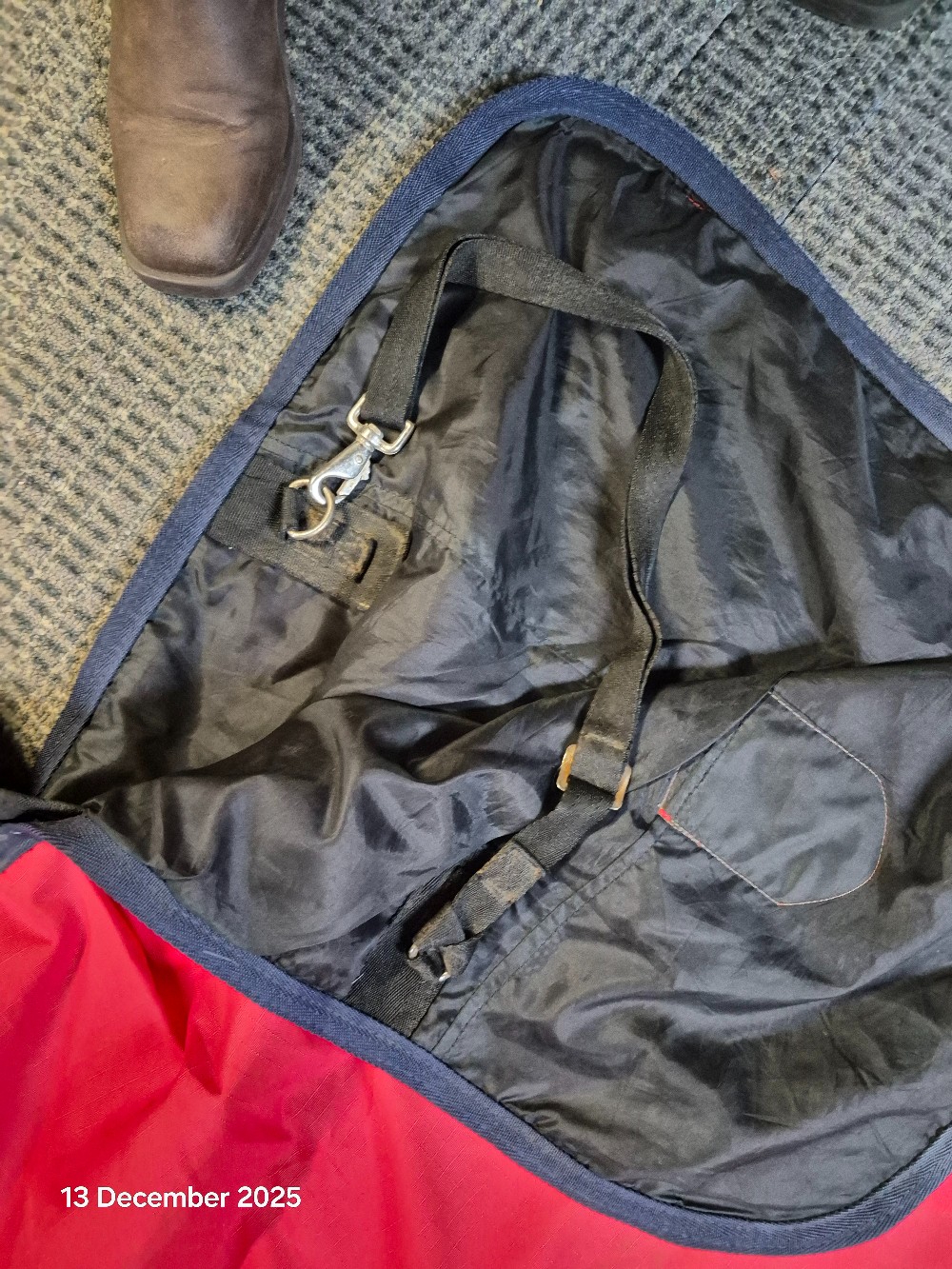 T/O No Neck Size 6;6 No FIll Colour Red USED Good working order has been washed & reproofed has some rust spots on metalwork