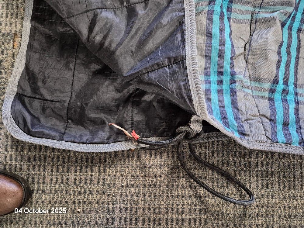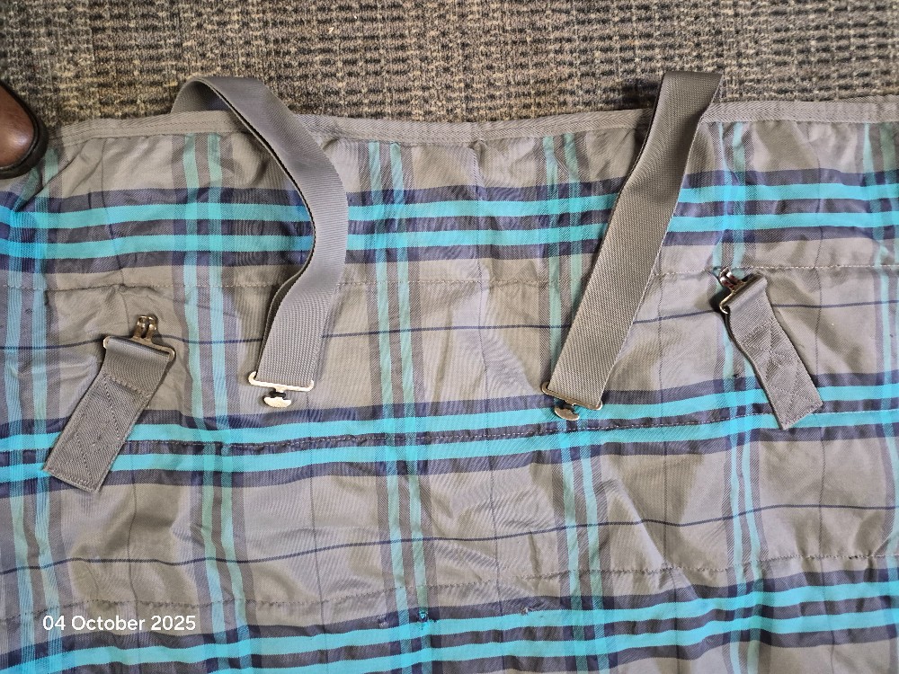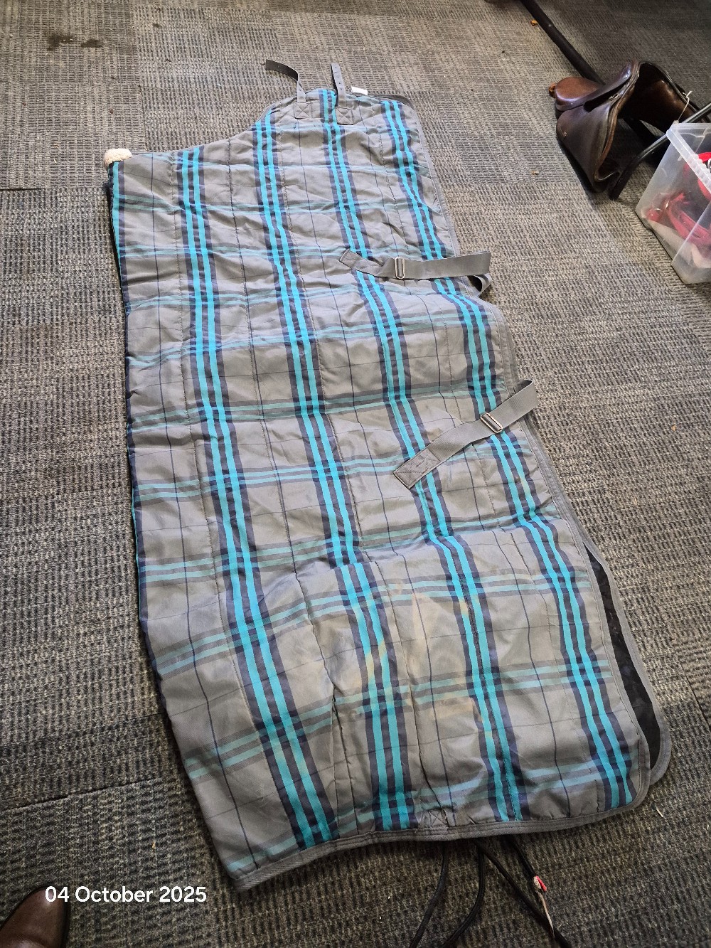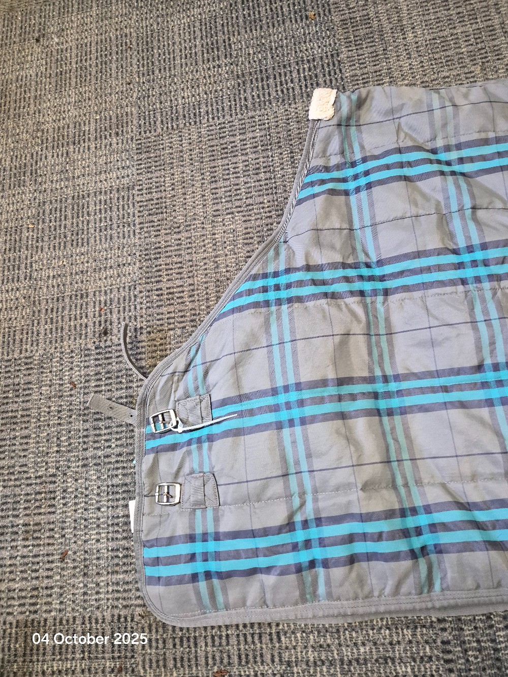 Saxon Stable Rug No Neck Size 7'3 180gm COlour Grey/Navy/Aqua USED Very Good Condition has been washed