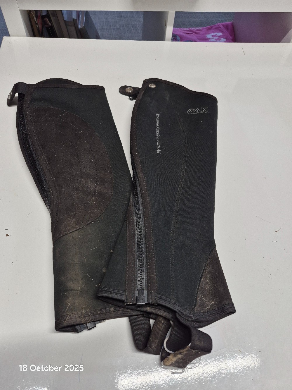 CAK Neoprene Half Chaps Size Adult Medium Colour Black USED Good working order does have some marks may wash out