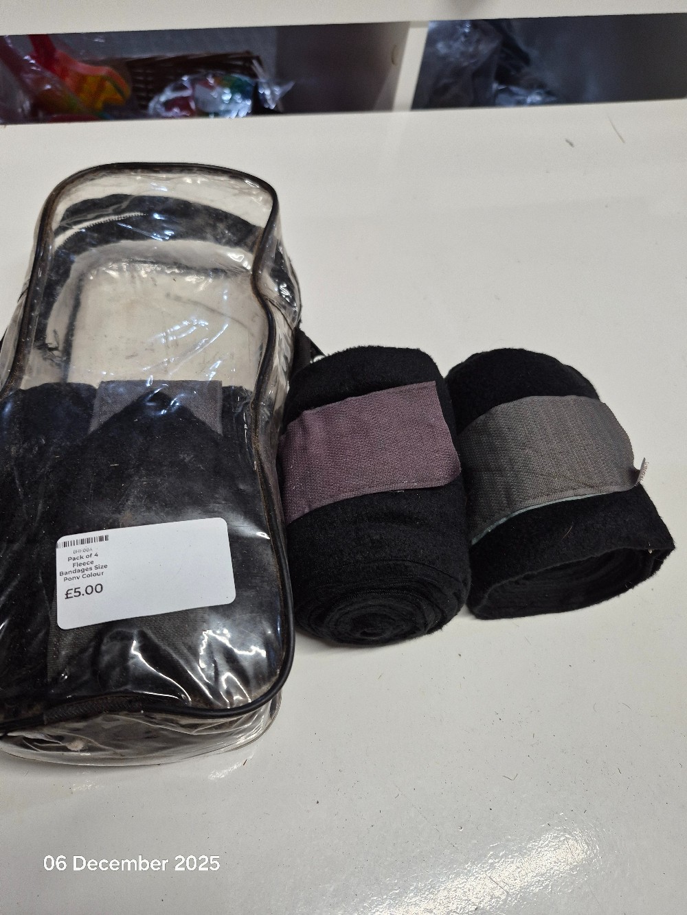 Pack of 4 Fleece Bandages Size Pony Colour Black UNUSED but some discoloration on Velcro straps