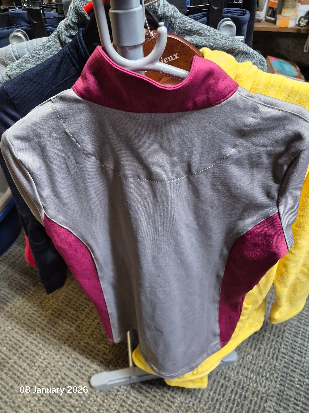 Hy Baselayer T Shirt Size 11-12 Yrs Colour Grey/Raspberry USED Good Condition