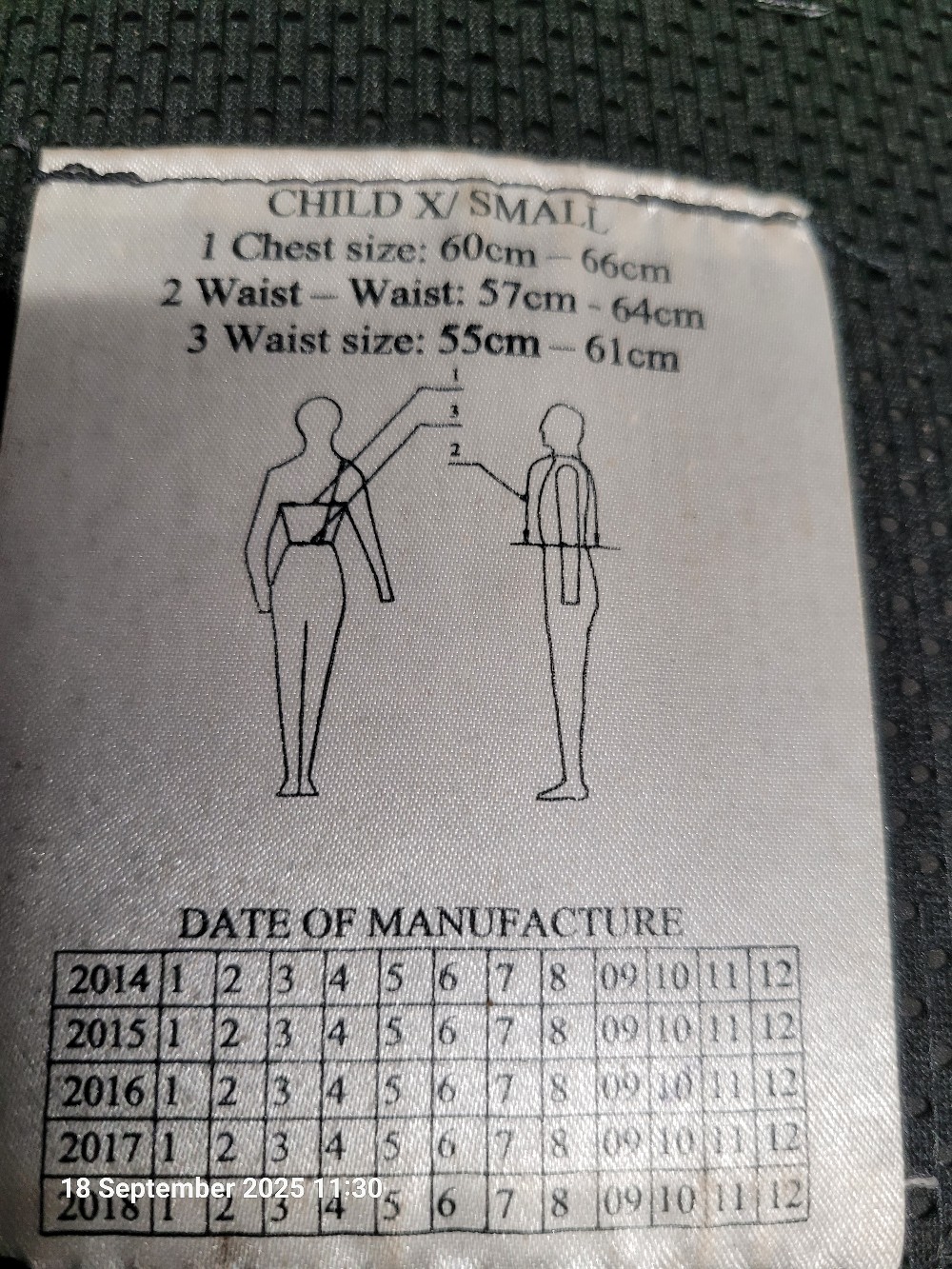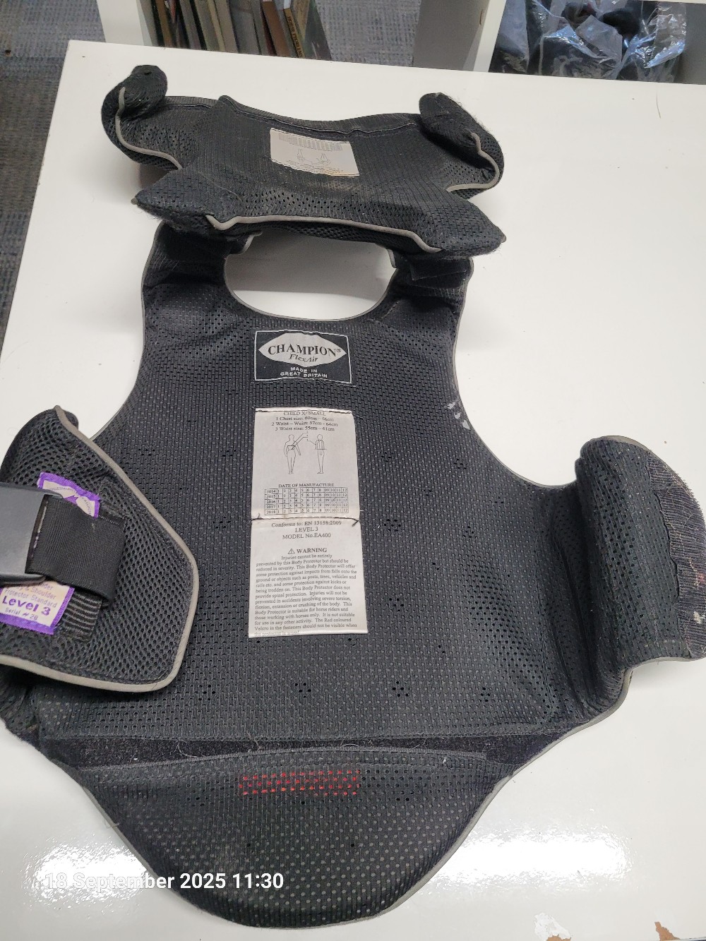 Champion Body Protector 2009 Level 3 Size Kids XSmall chest 60-66cm waist to waist 57-64cm waist 55-61cmUSED Good Condition
