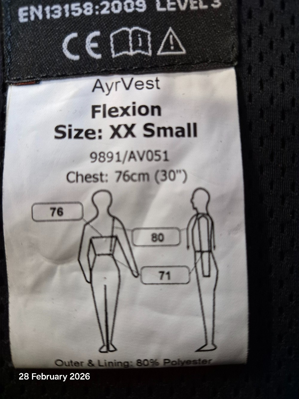 Size AXXSmall Chest 76cm Waist 71cm Shoulder 80cm