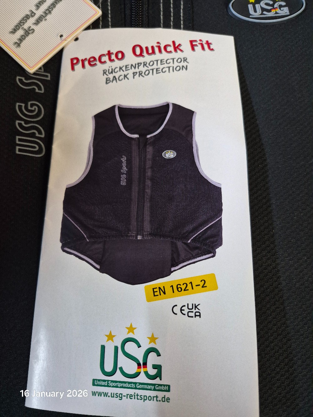 USG Perecto Quick Fit Back Protector EN1621-2Size Adult XL shoulder to waist 53-56 cmBNWT