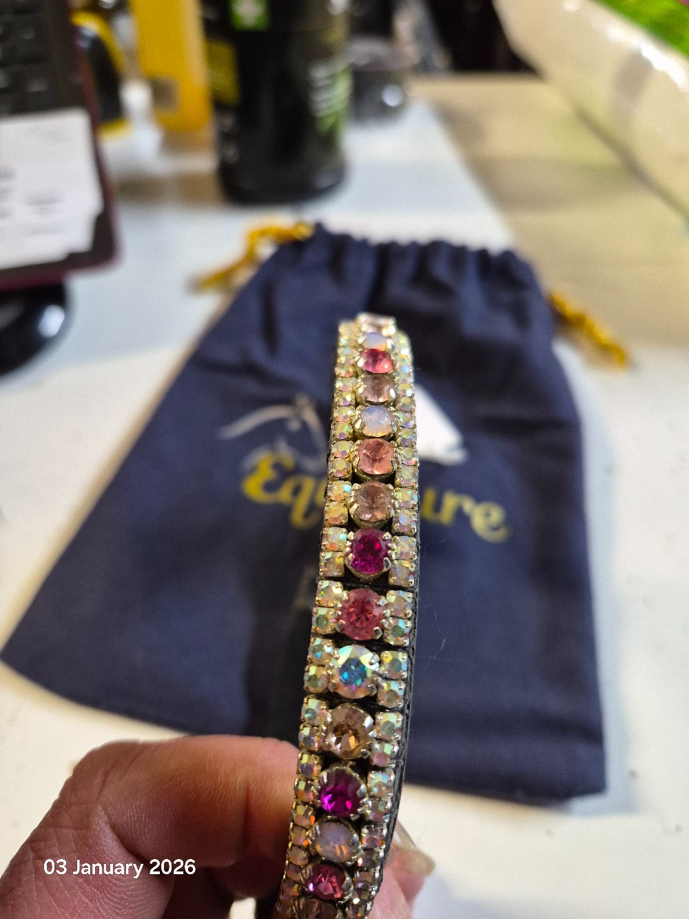 Equiture Diamonte Browband Size Pony 38cm Colour Black/Pinks NEW