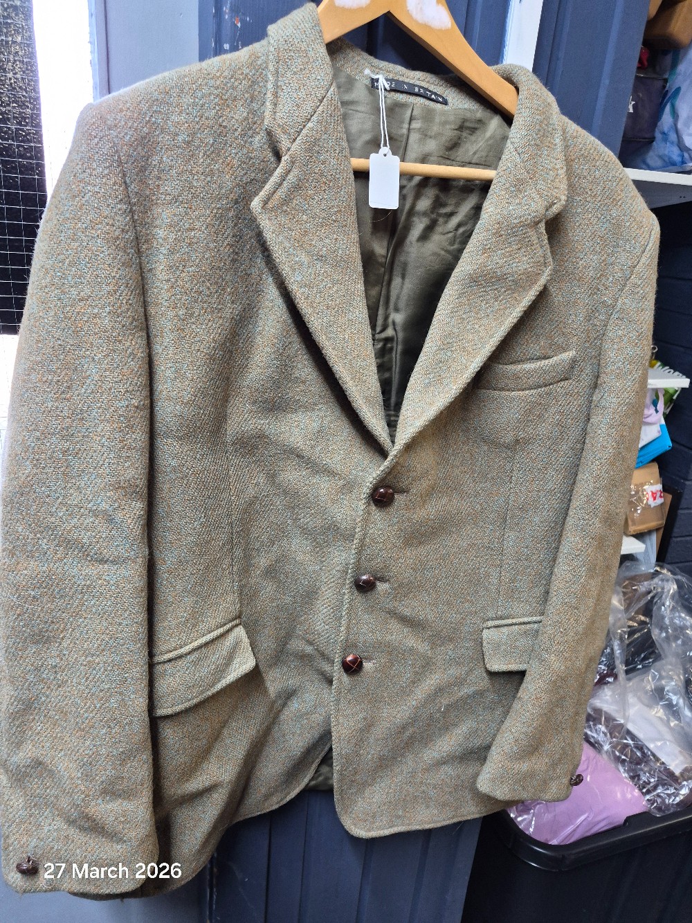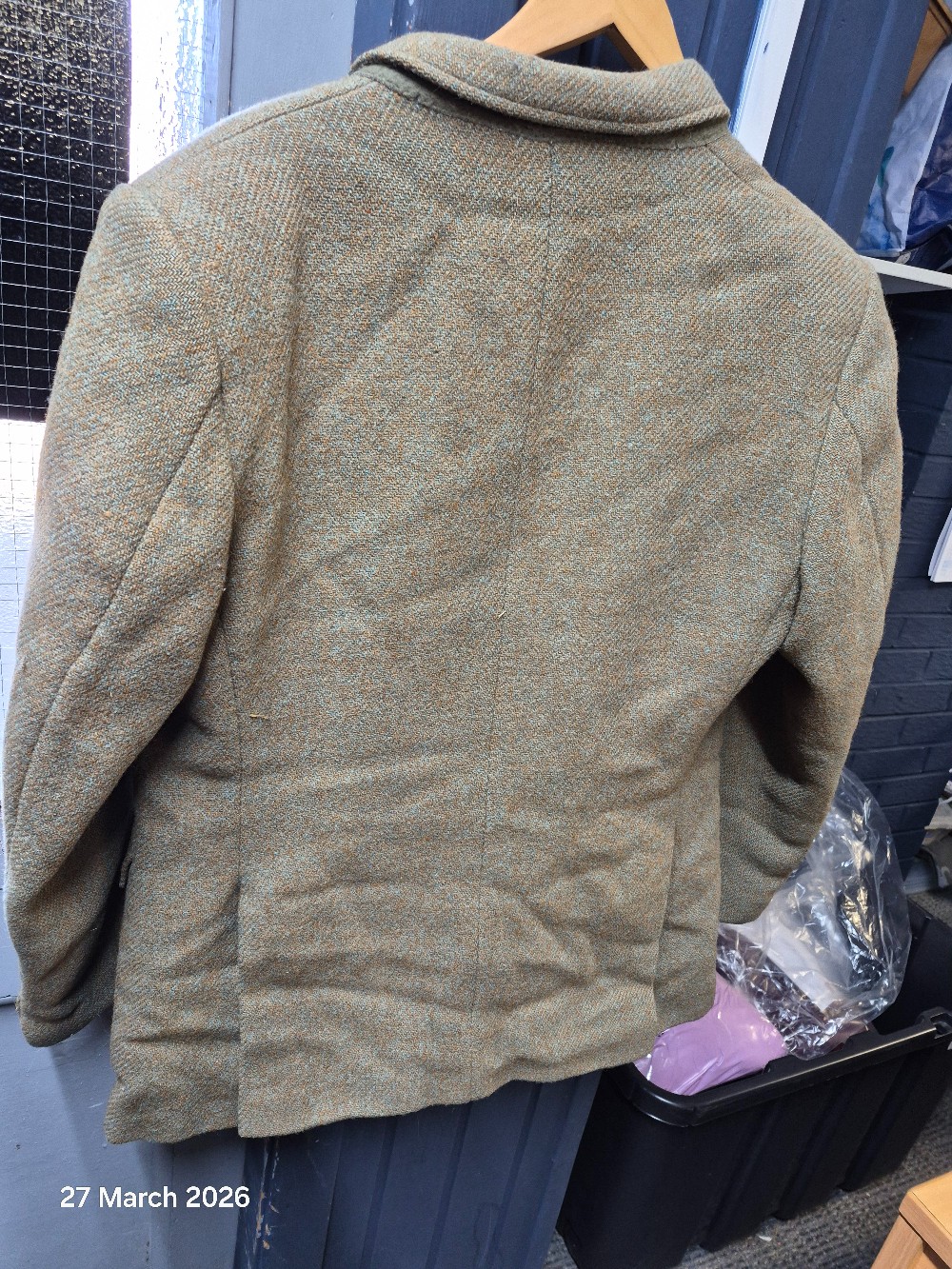 Men's Harris Tweed Jacket Size 44" Chest Colour Green/Brown USED Good Condition