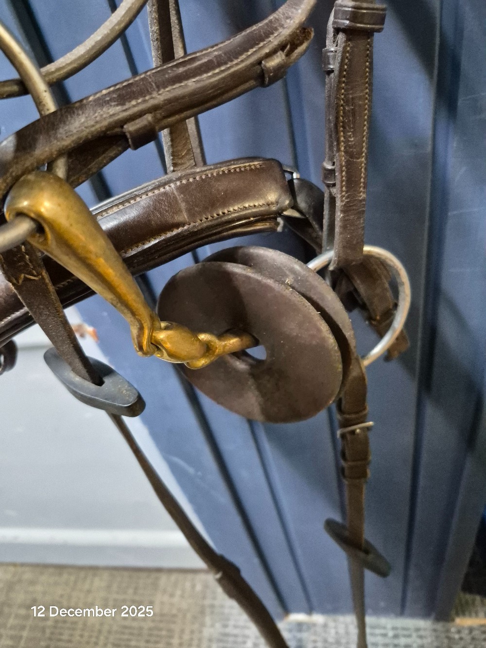 Brown Comfort Bridles with Rubber Pimple Reins & stops with a loose ring lozenge bit and guards Size 5 1/2" Bit