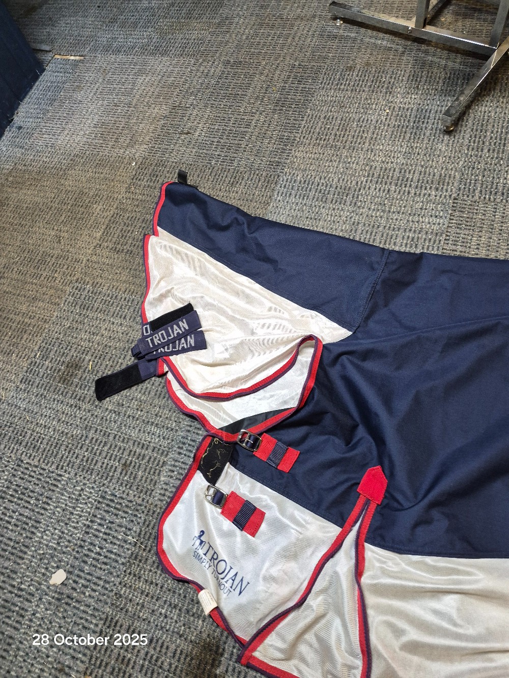 Gallop Trojan W/Proof Combo Fly Rug Size 6'0 Colour Navy/Red USED Good working order washed & reproofed has one small hole