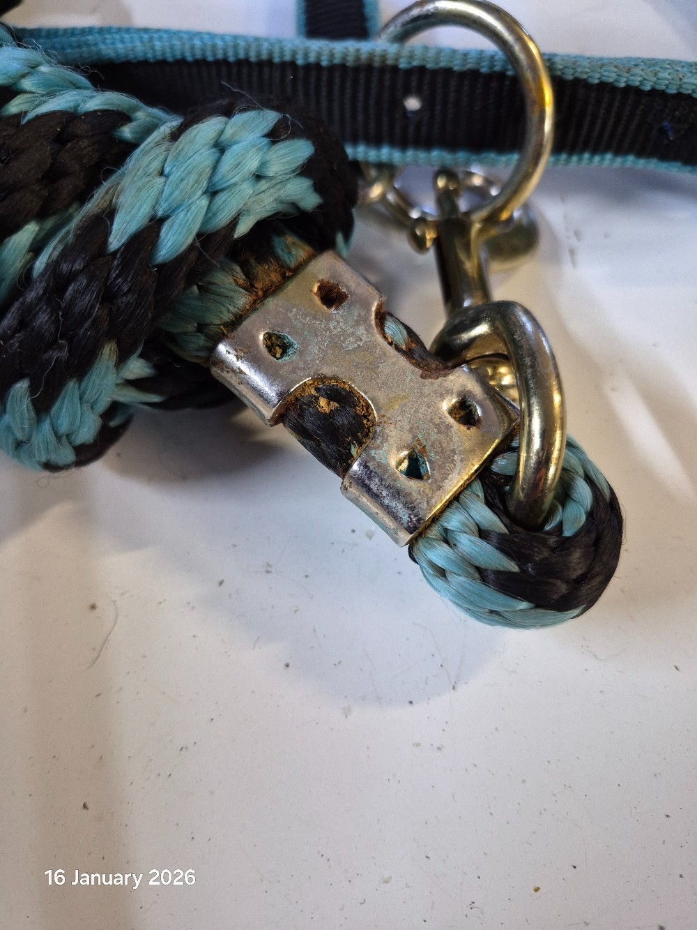 Bridleway Head Collar & Lead Rope Size Cob Colour Black/Teal USED Good condition