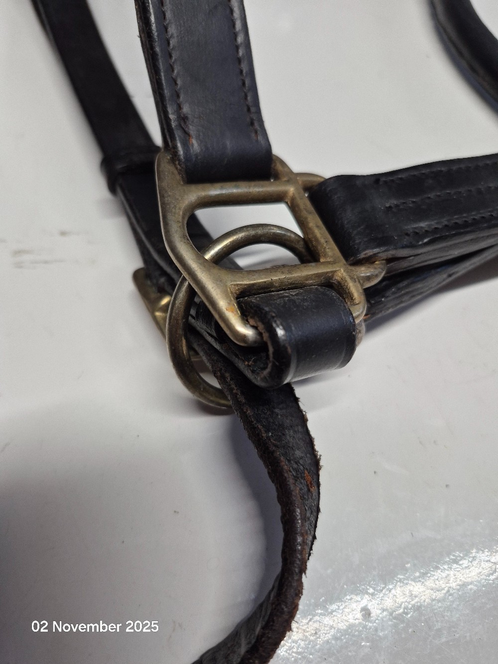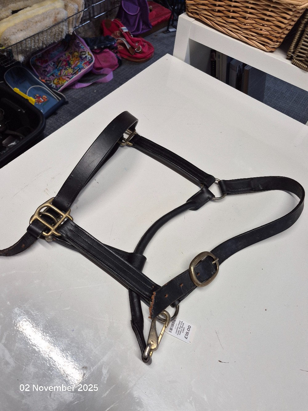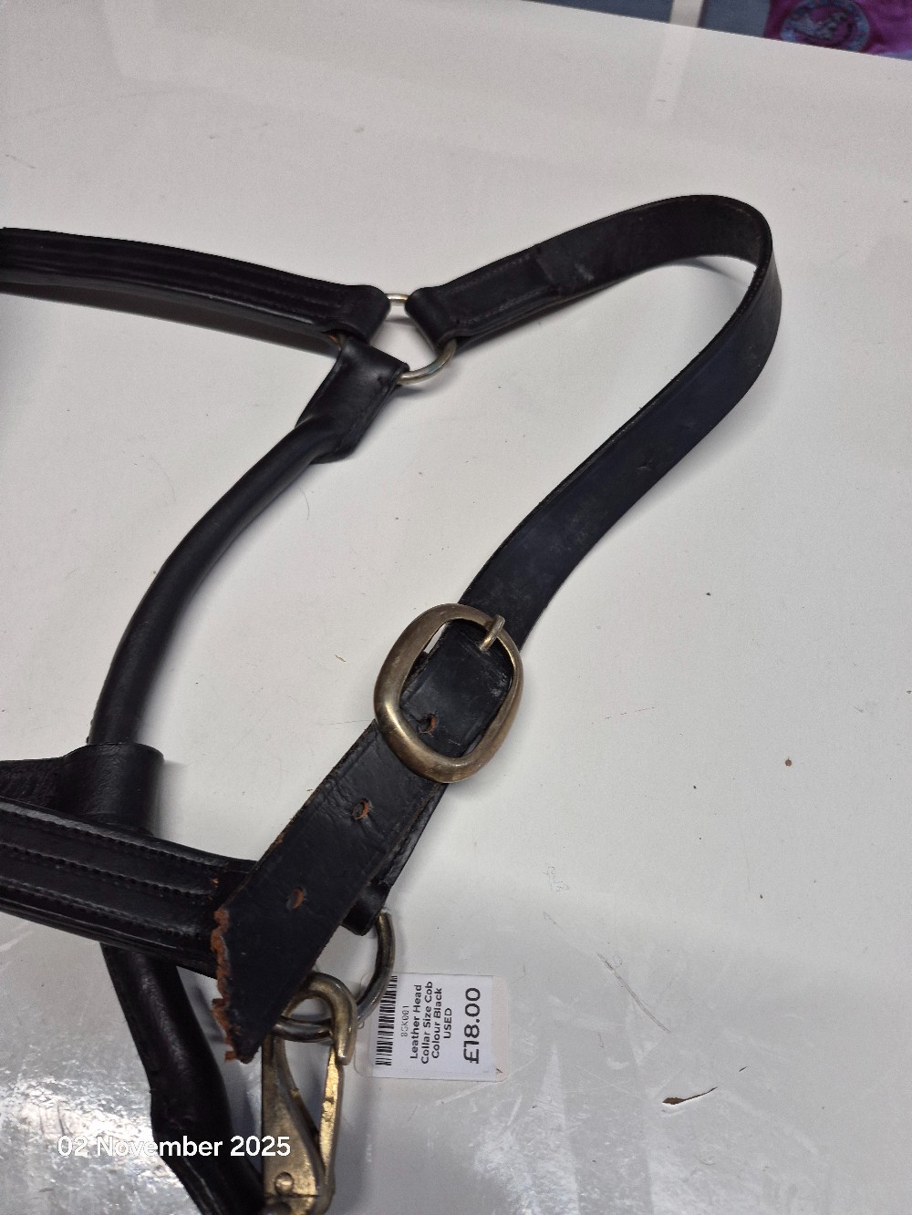 Leather Head Collar Size Cob Colour Black USED Good working order one strap has been chewed by the dog