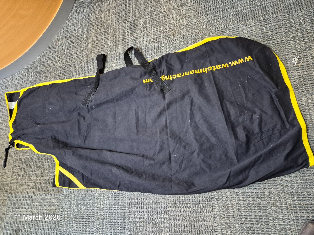 Cotton Sheet Branded Size 190cm Colour Black/ Yellow USED VEry Good COndition has watchman racing.com embriodered on it