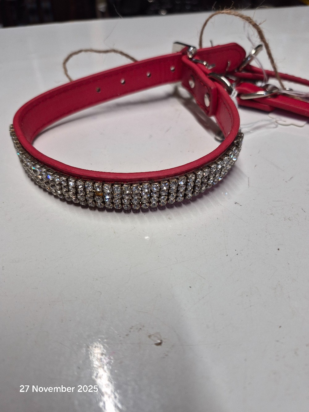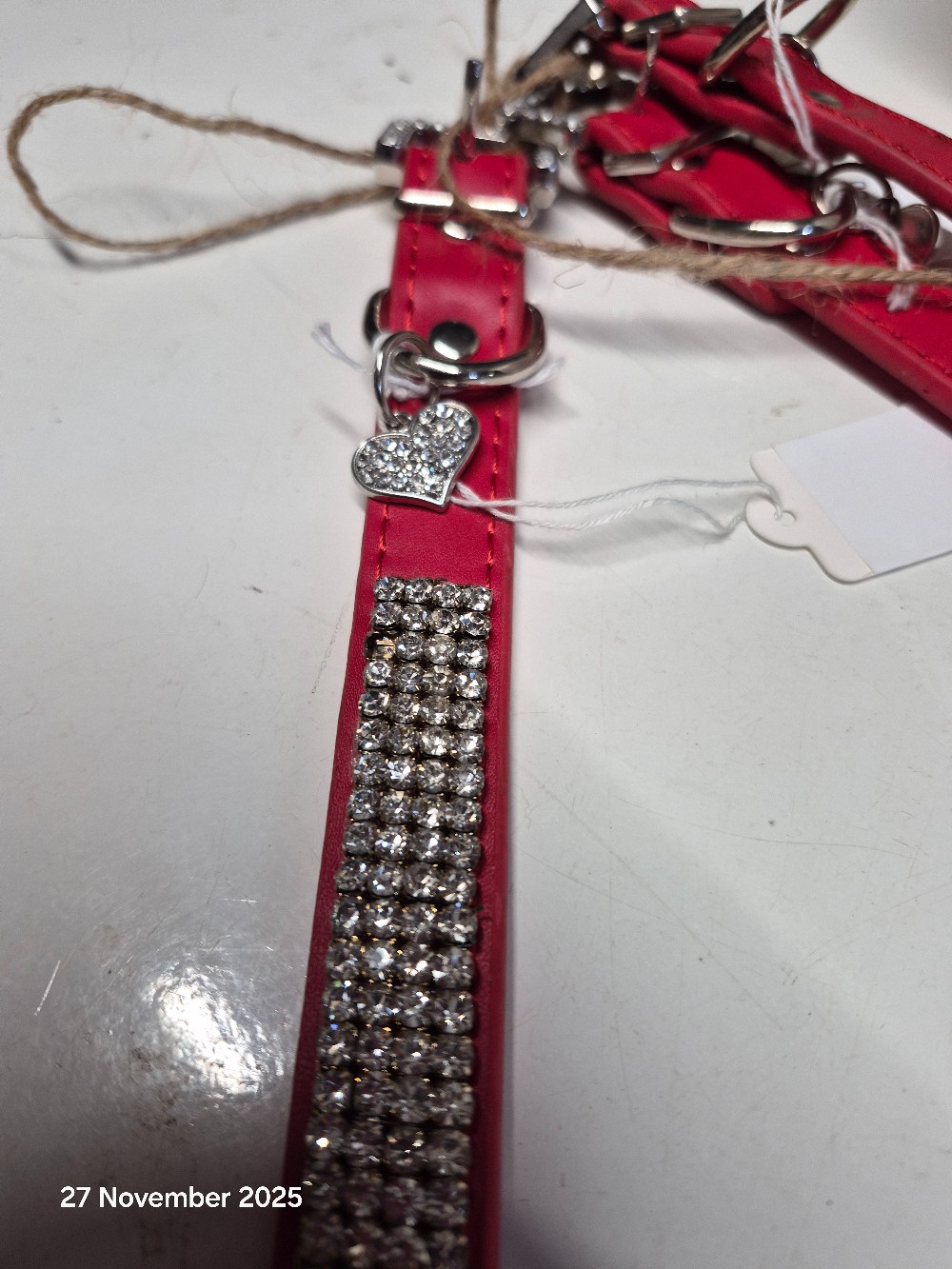 Diamonte Collar With Heart Charm Size 12" to 15" L Colour Red NEW