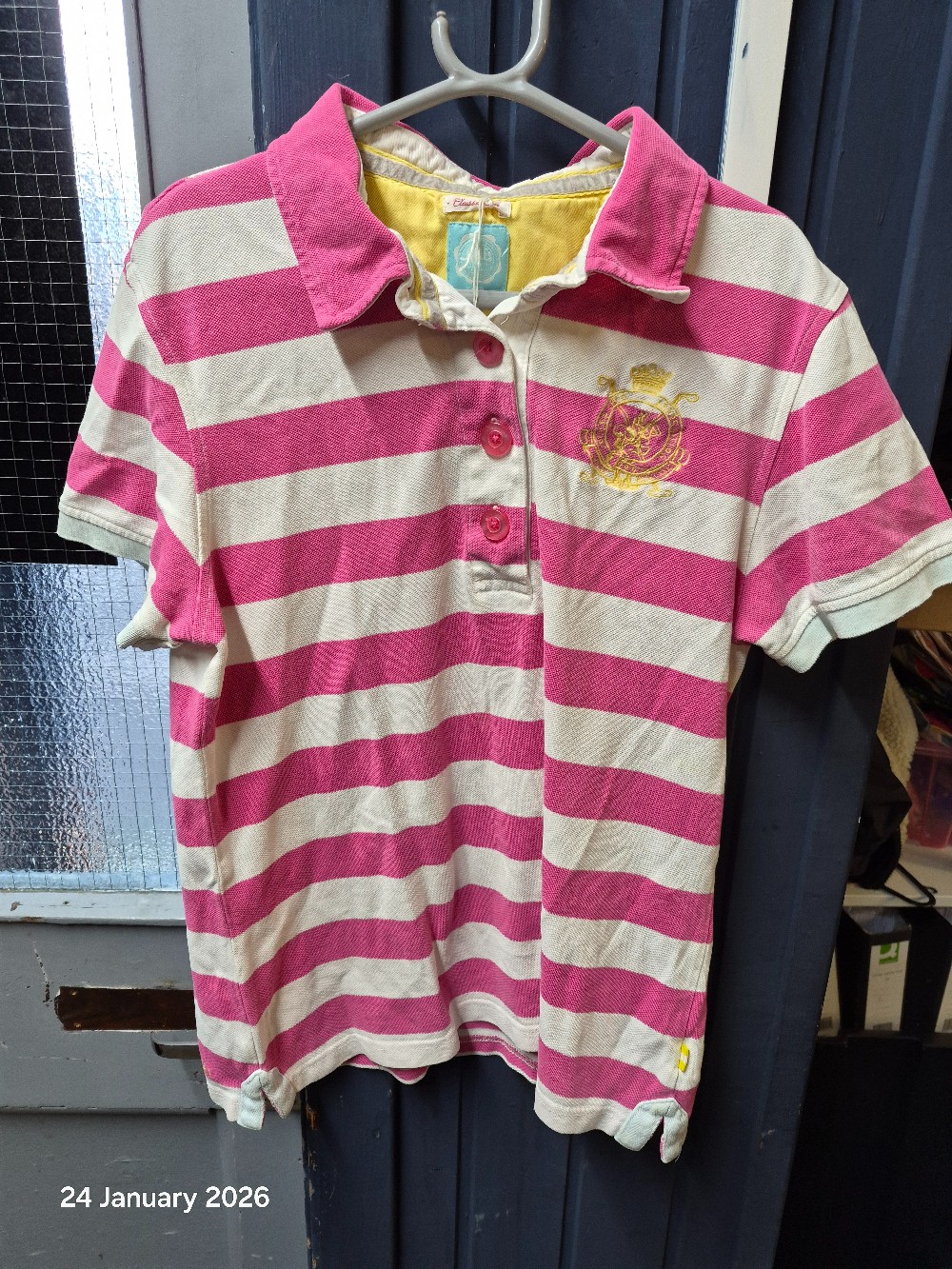 Joules Polo Shirt Size 12 Colour Pink/White USED Good Condition