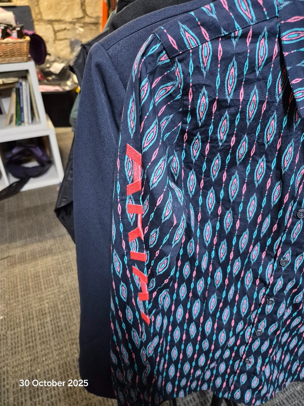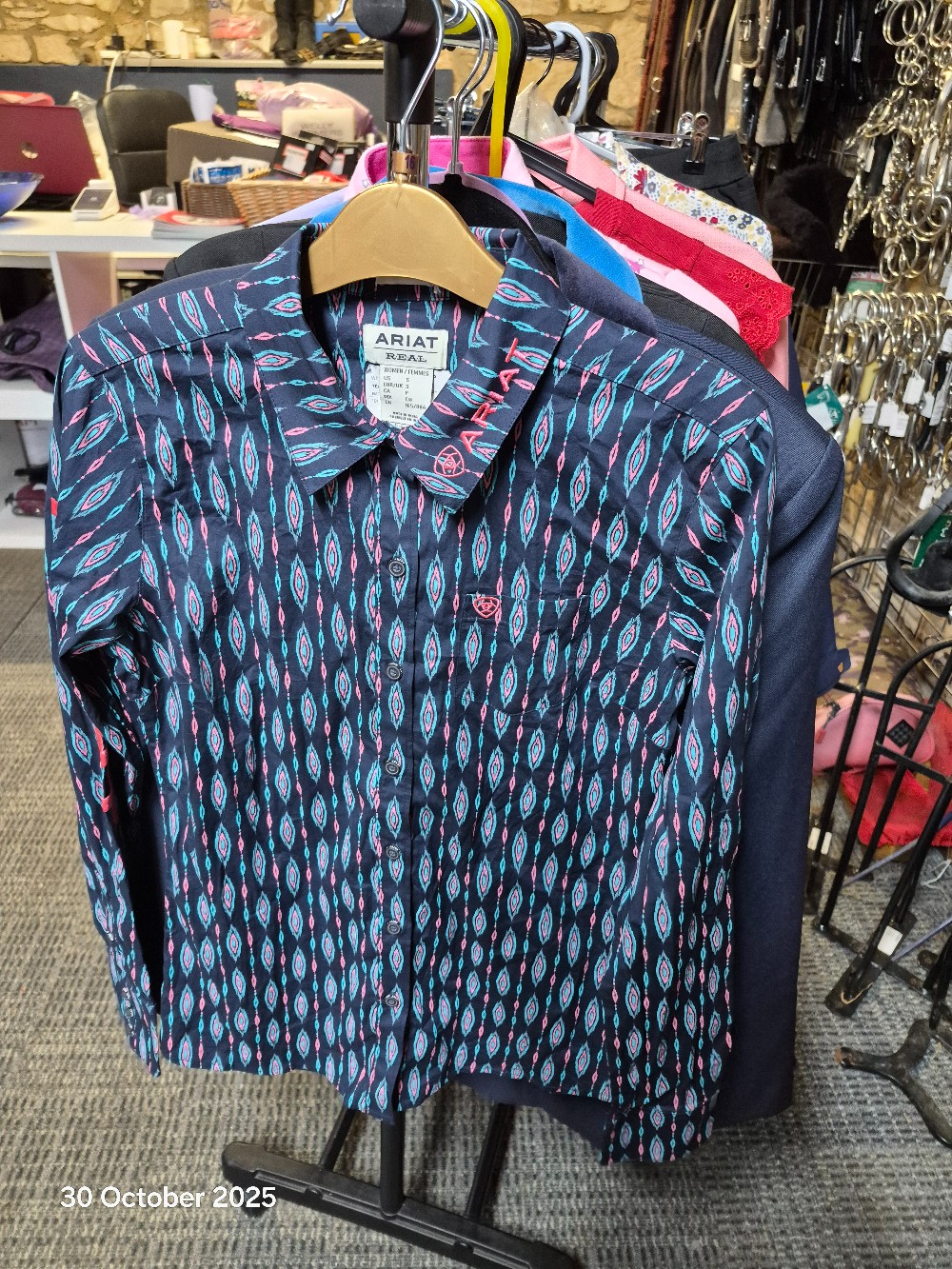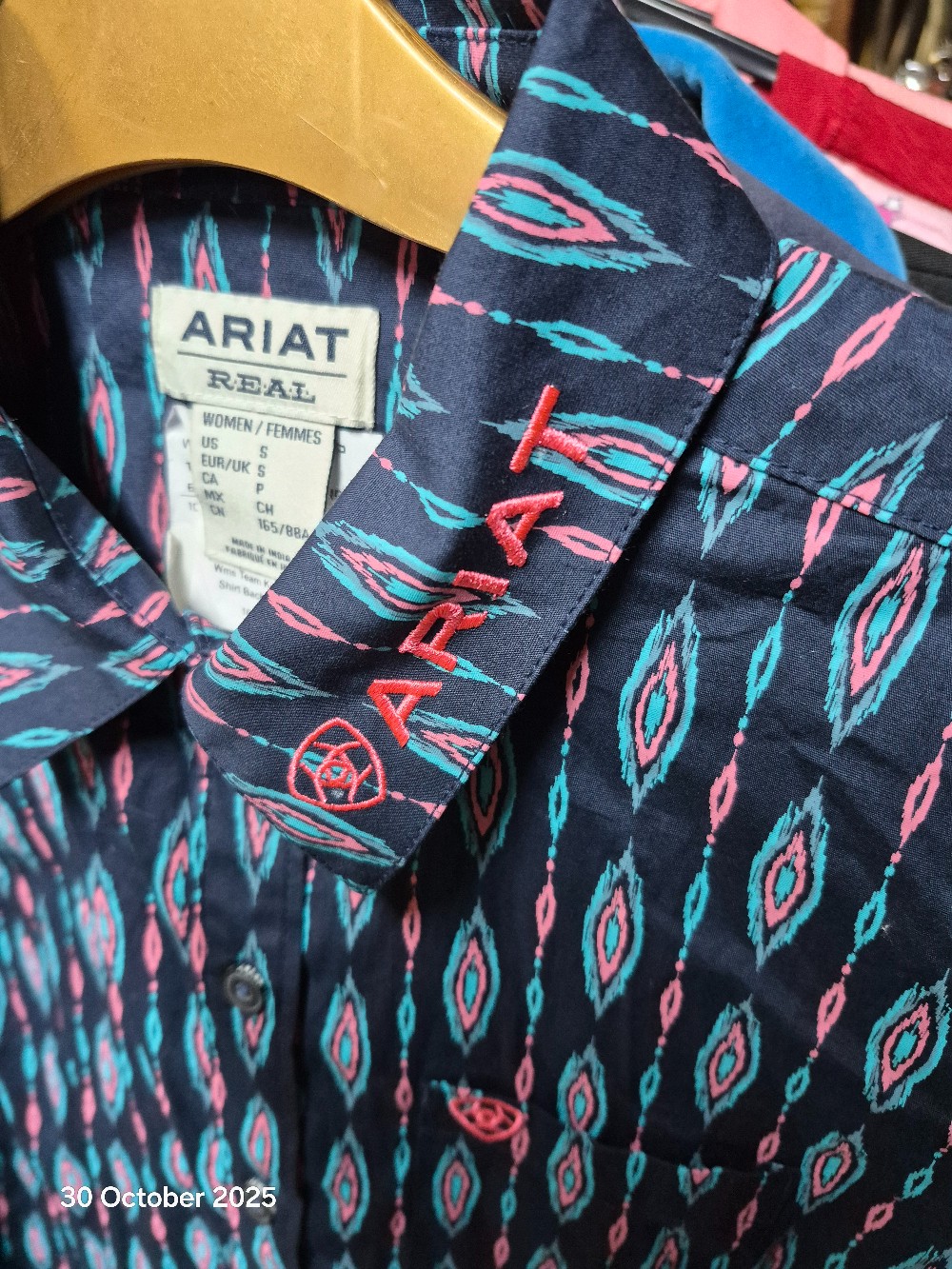 ARIAT Fitted Shirt Size Small Colour Navy/Pink USED Very Good COndition