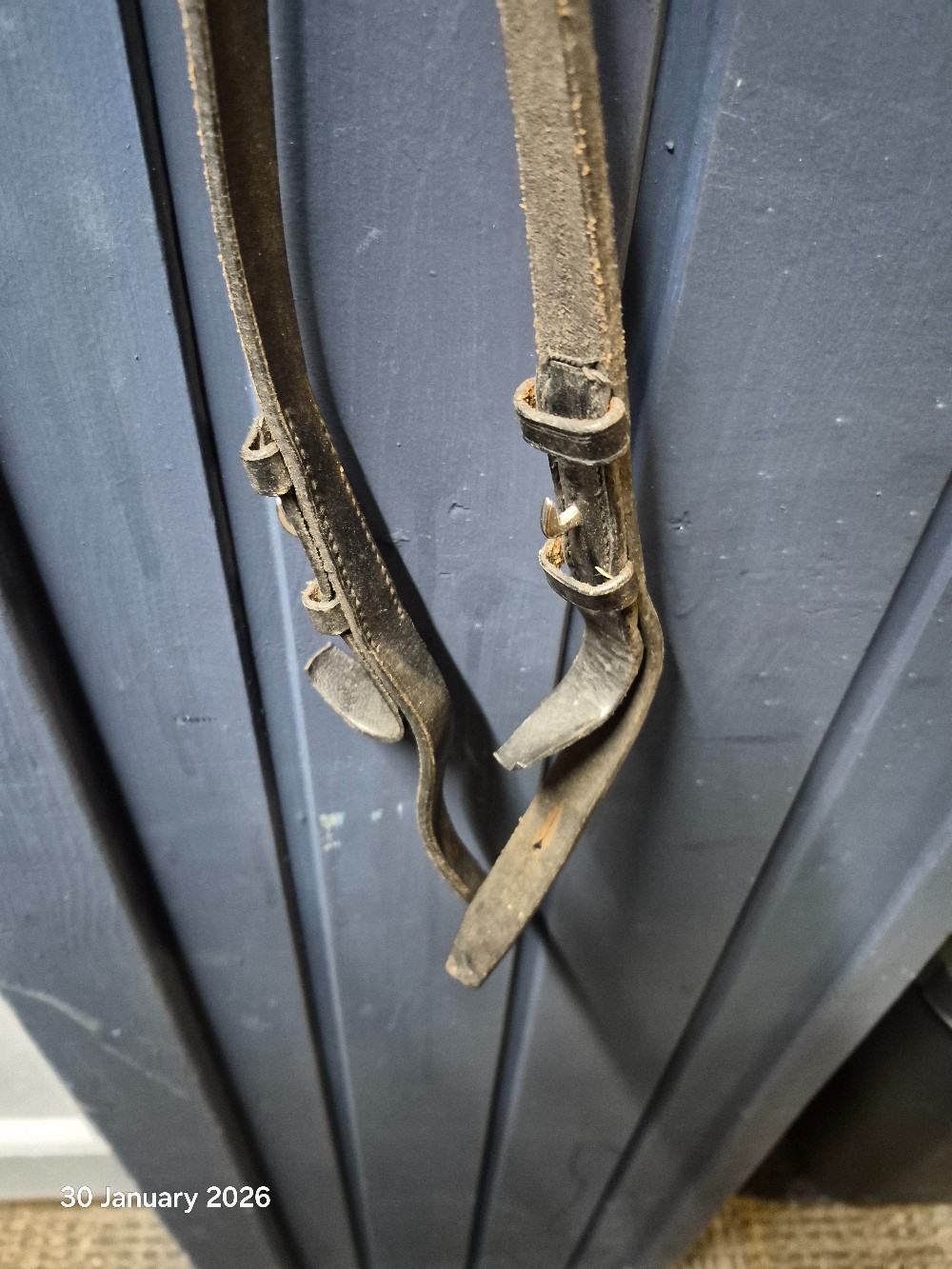 PLain Leather Reins Size 54cm long 2 cm wide Colour Black USED Good COndition