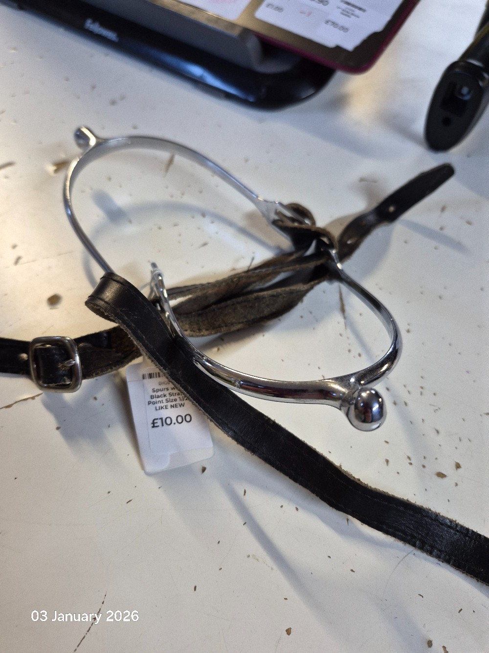 Spurs with Black Straps Point Size 1//2" LIKE NEW