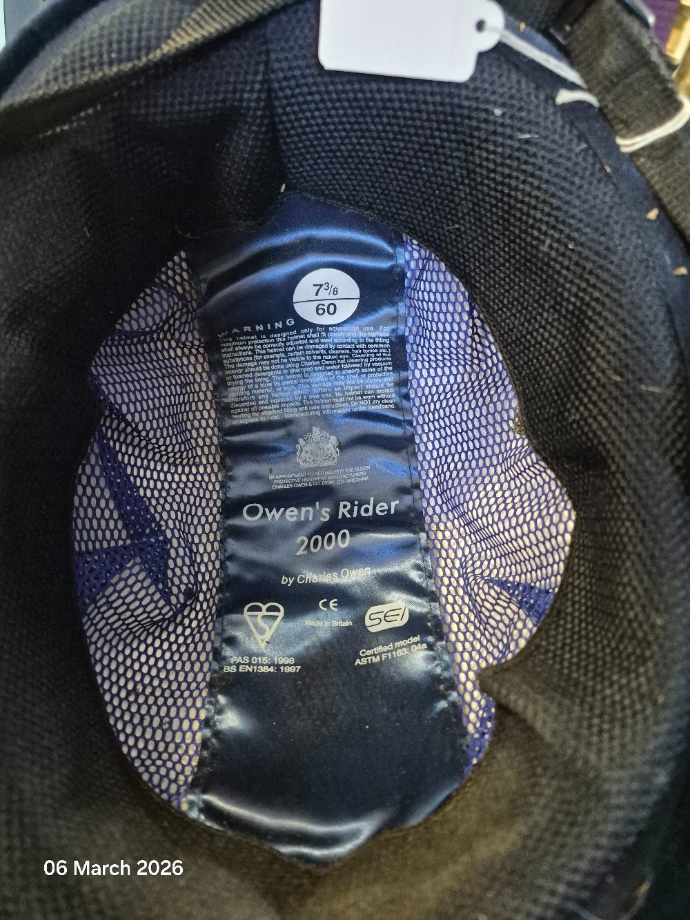 Charles Owen Rider 2000 Hat NOT IN STANDARDSize 60cm 7 3/8 Colour Navy USED Very Good Condition