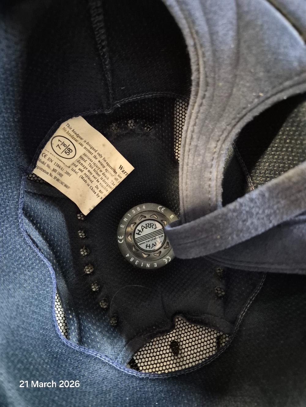 Harry Hall Riding Hat NOT IN STANDARD BSEN1384Size 58cm 7 1/8 COlour Navy USED Immacutlate Condition declared no drops or falls