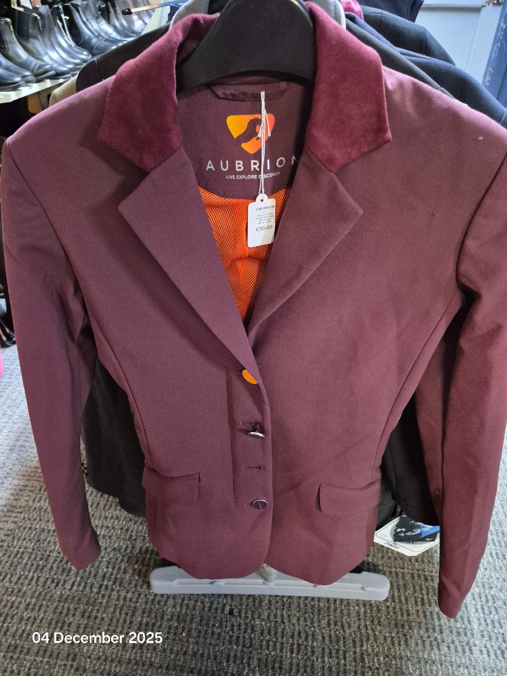 Aubrion SHow Jacket Size Kids 28" Colour Wine USED Good condition has 1 button missing on the front and 1 loose button