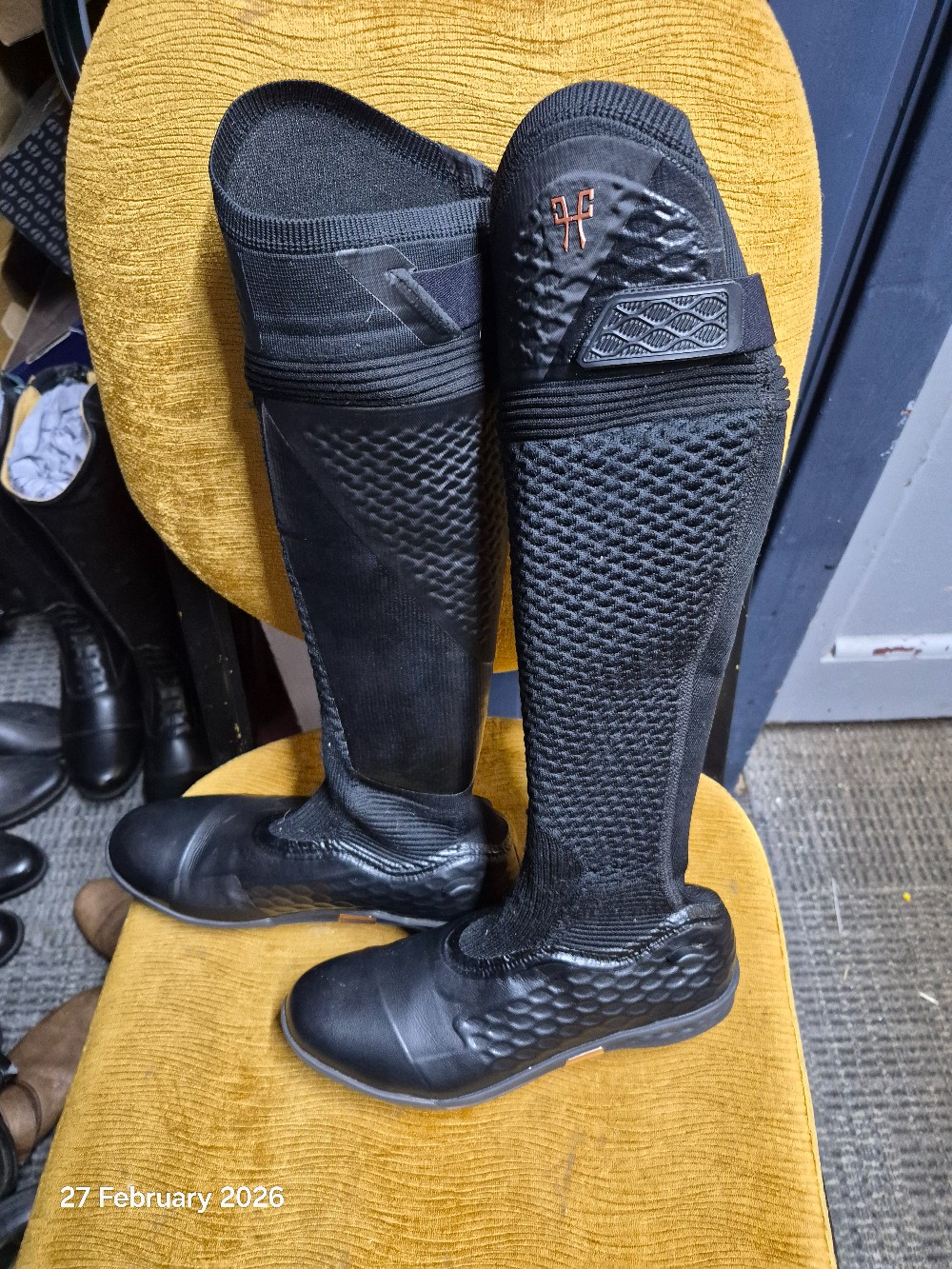 Horse Pilot Teknit Boots Highly stretchy accordion knit: Designed to fit all leg heights. Highly stretchy 3D mesh: 4 directions, designed to fit all anatomies. Very breathable, it allows the muscle to function fully.