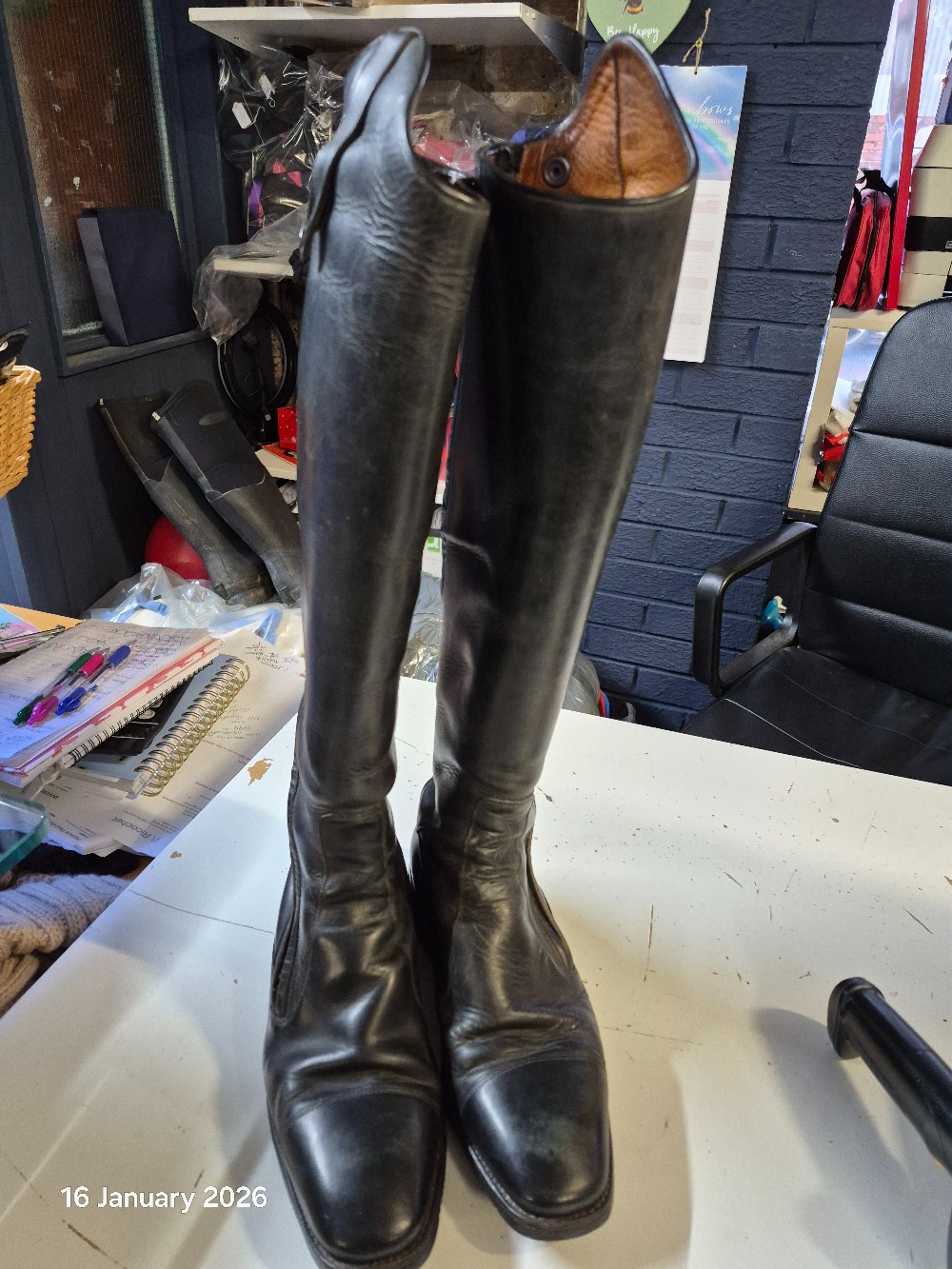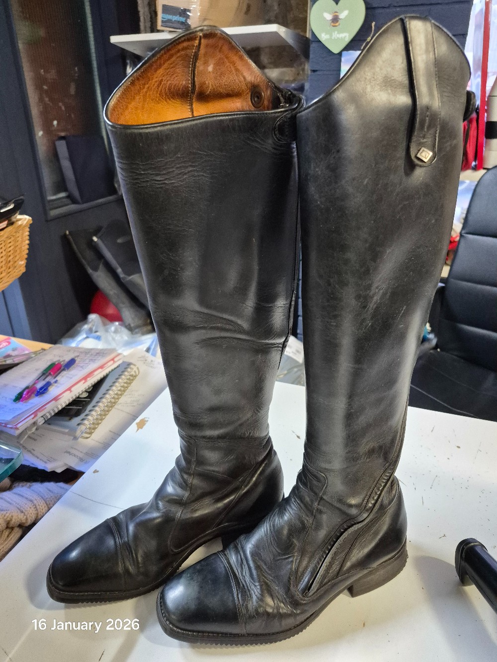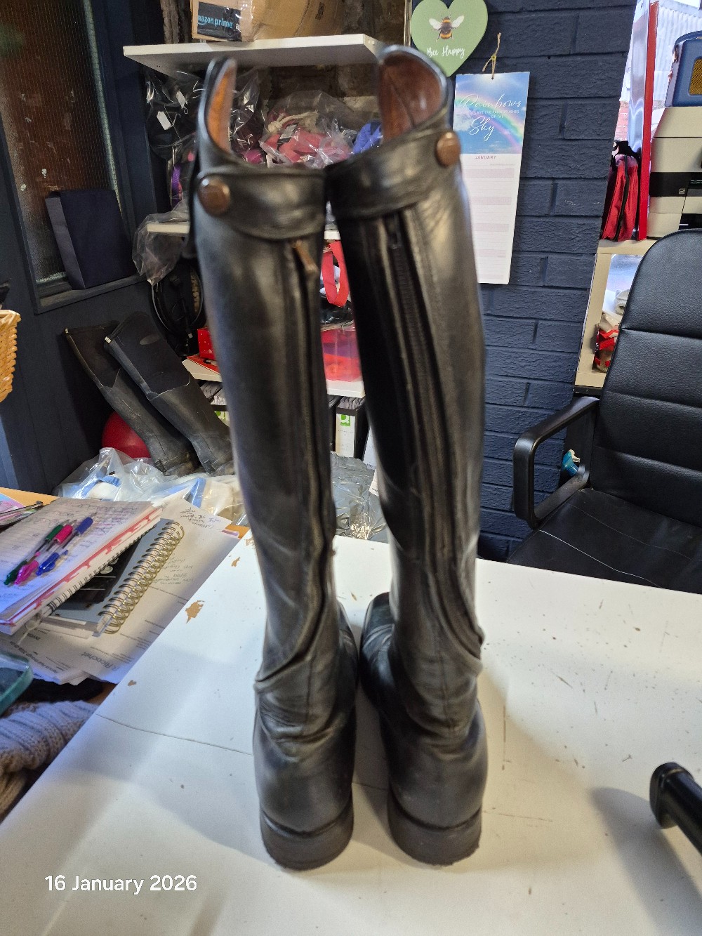 Tall Riding Boots with Front ove side Zip Size 40 = 6 1/2 COlour Black USED Good Condition