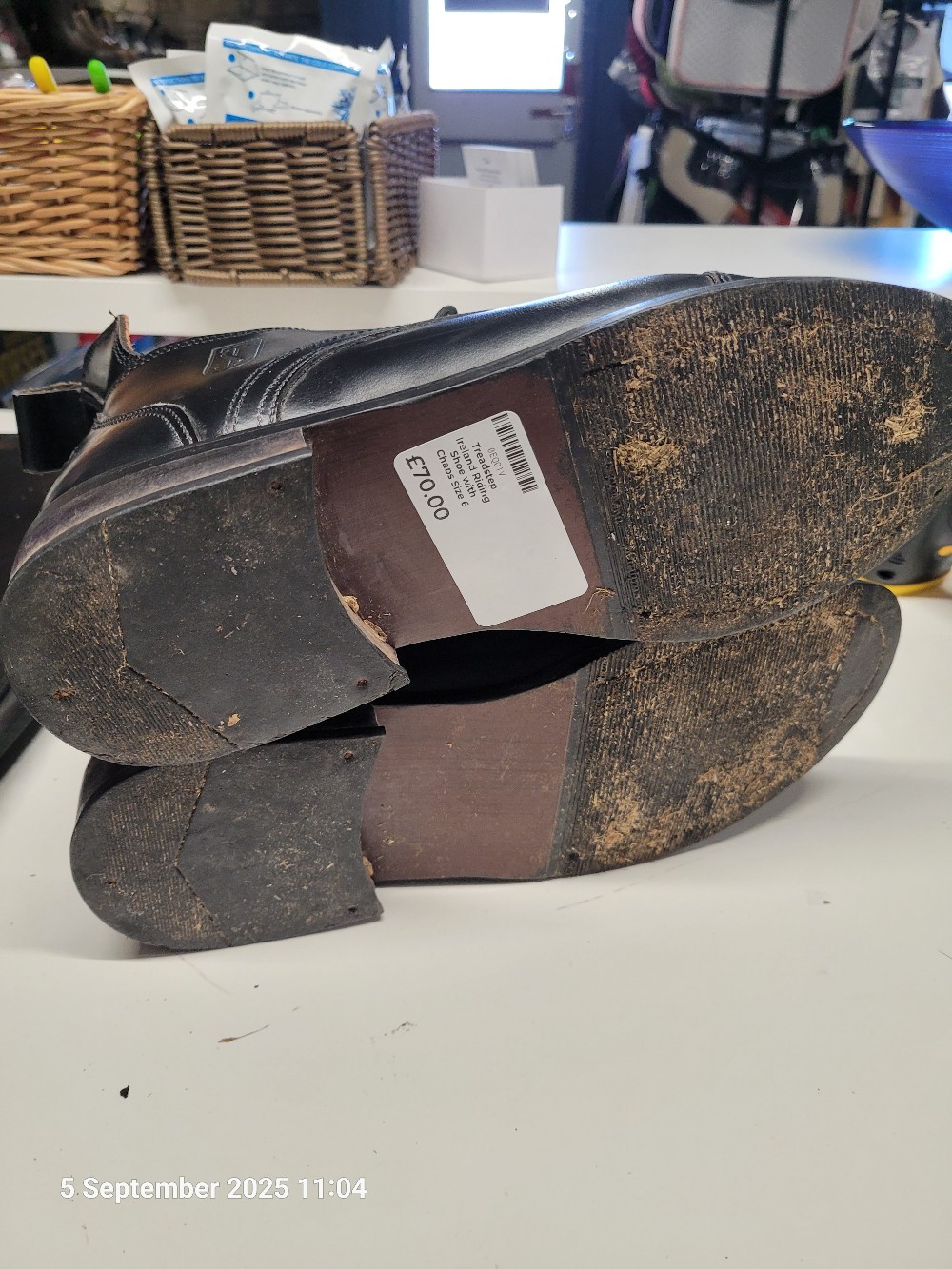 Treadstep Ireland Riding Shoe with Chaps Size 6 & Chaps are wide calf COlour Black USED Very Good Condition