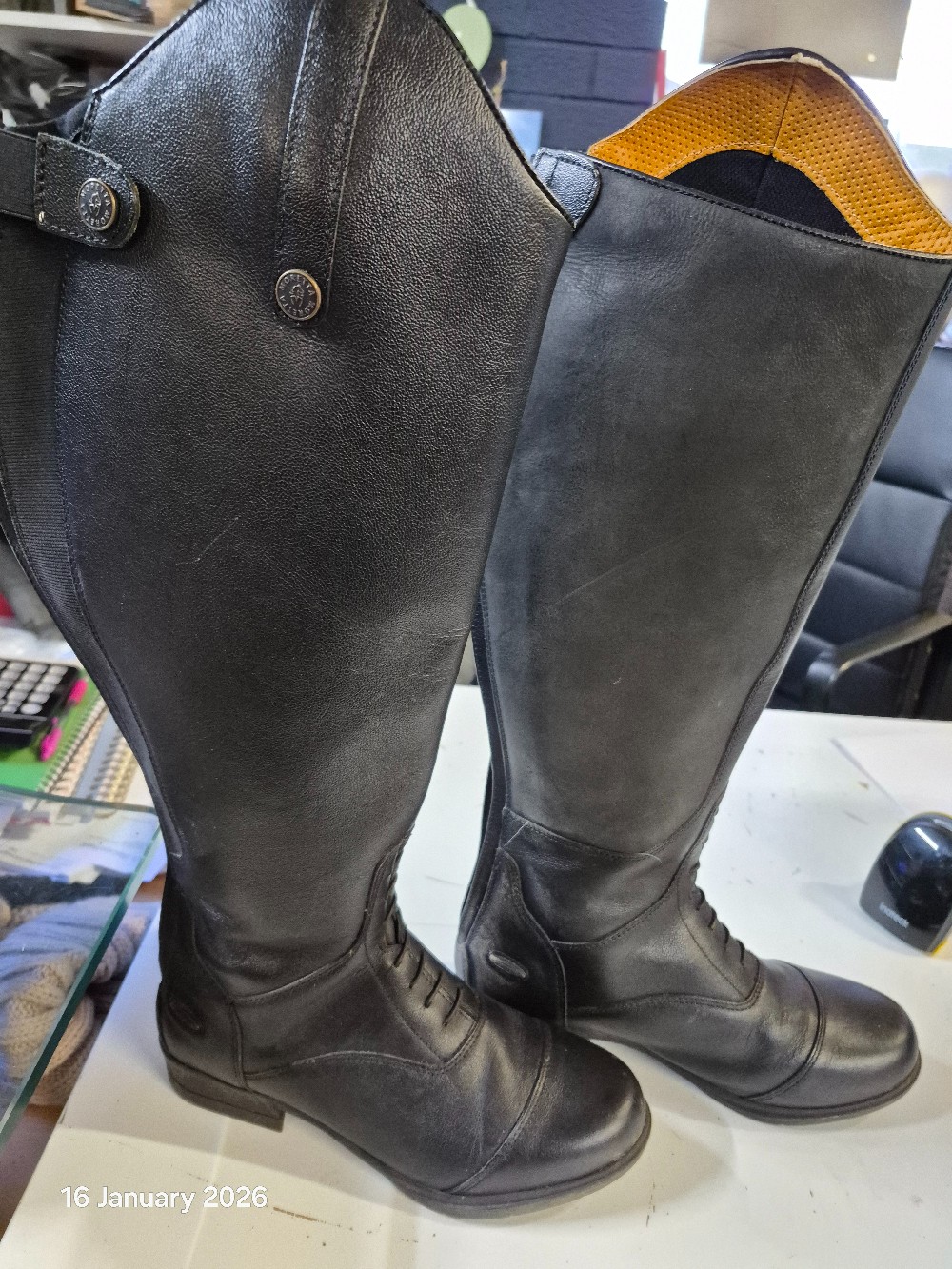 Moretta Albina Tall Riding Boots Size 7 Ex Wide Calf Colour Black USED Very Good COndition